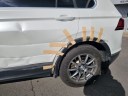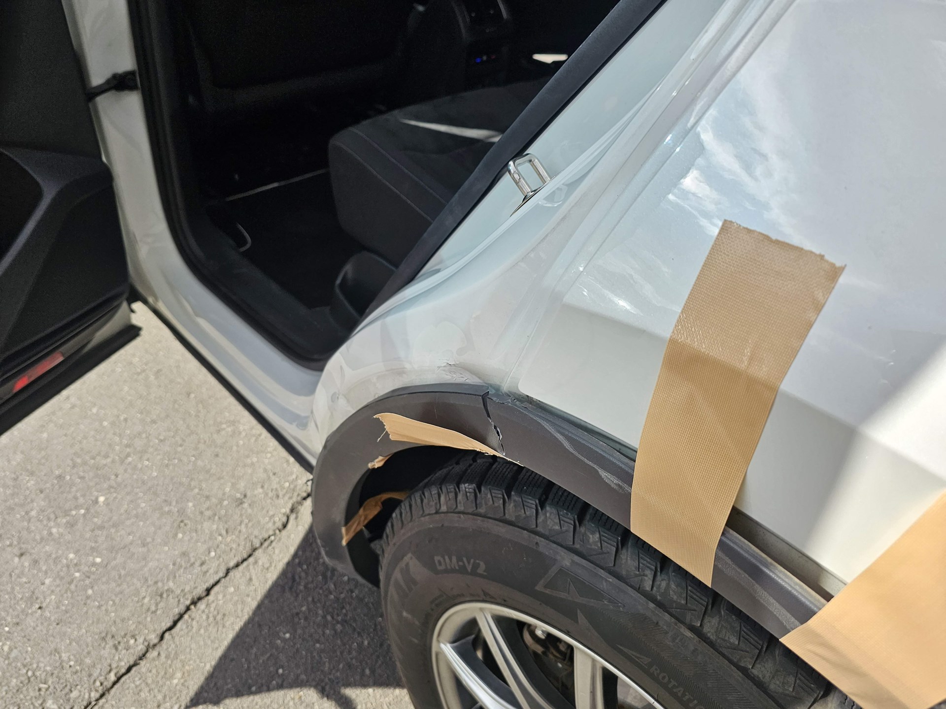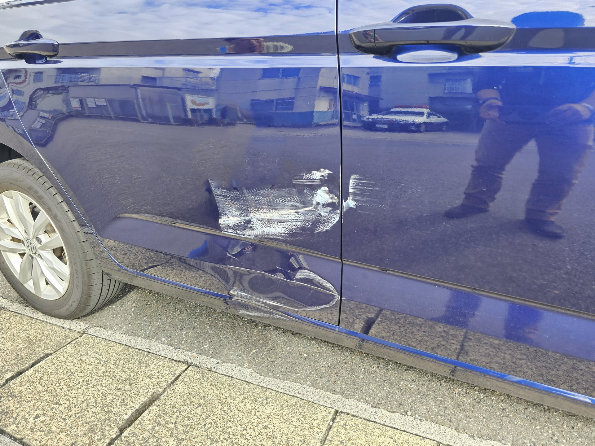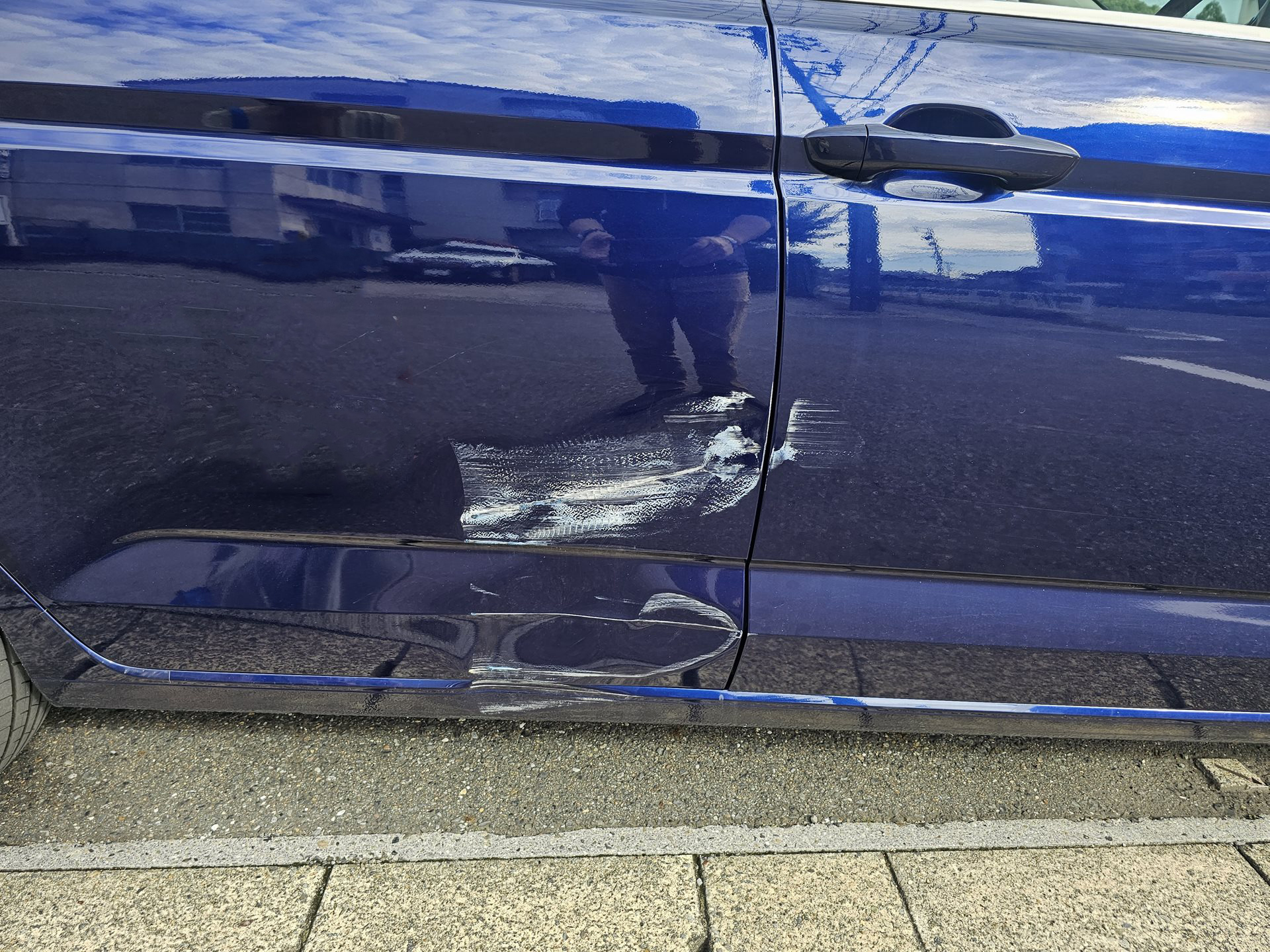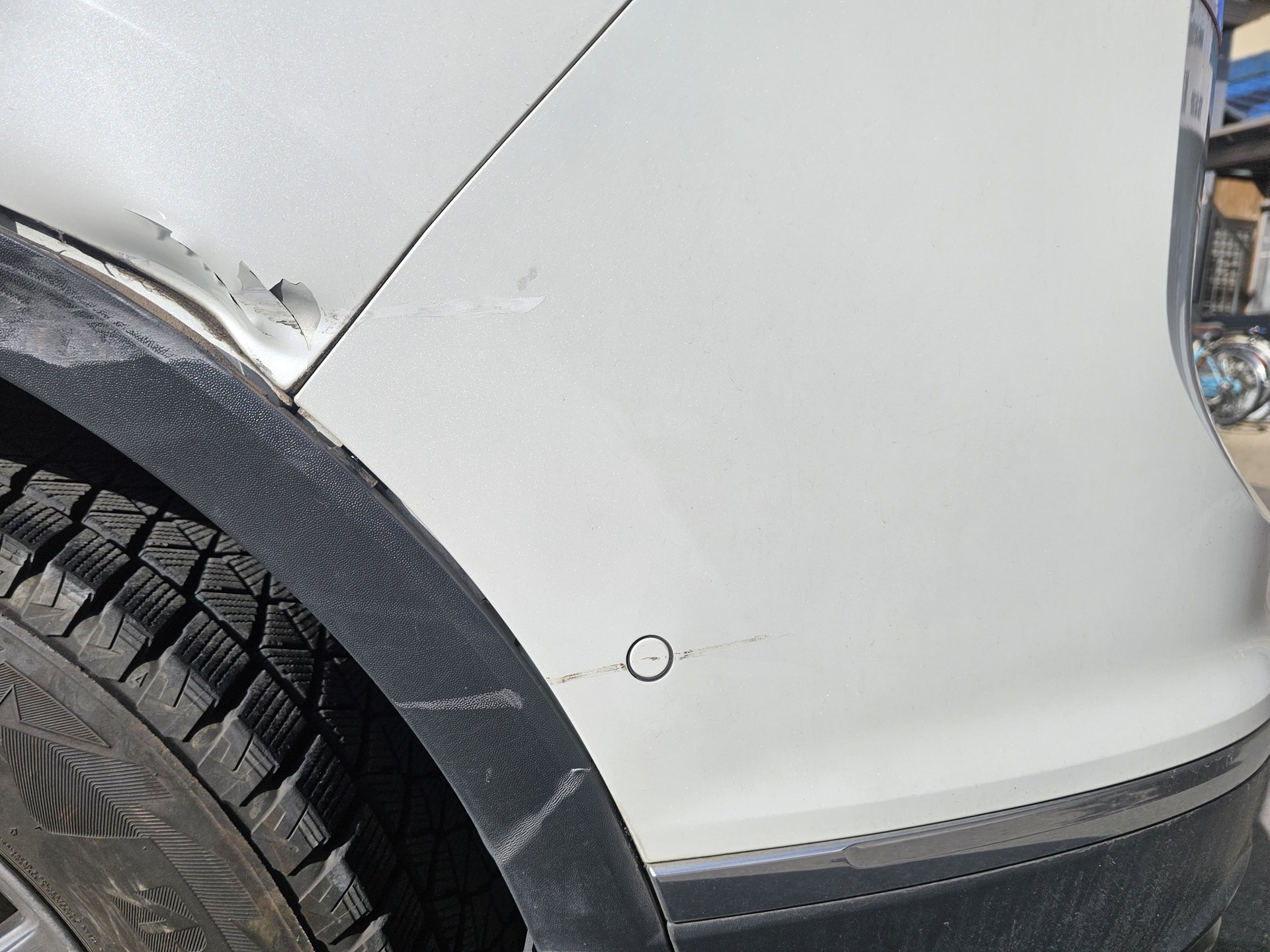 パサートです。嫌なところが凹んでいます。 下部のシボパーツまで傷が入っていますので、こちらは交換です。