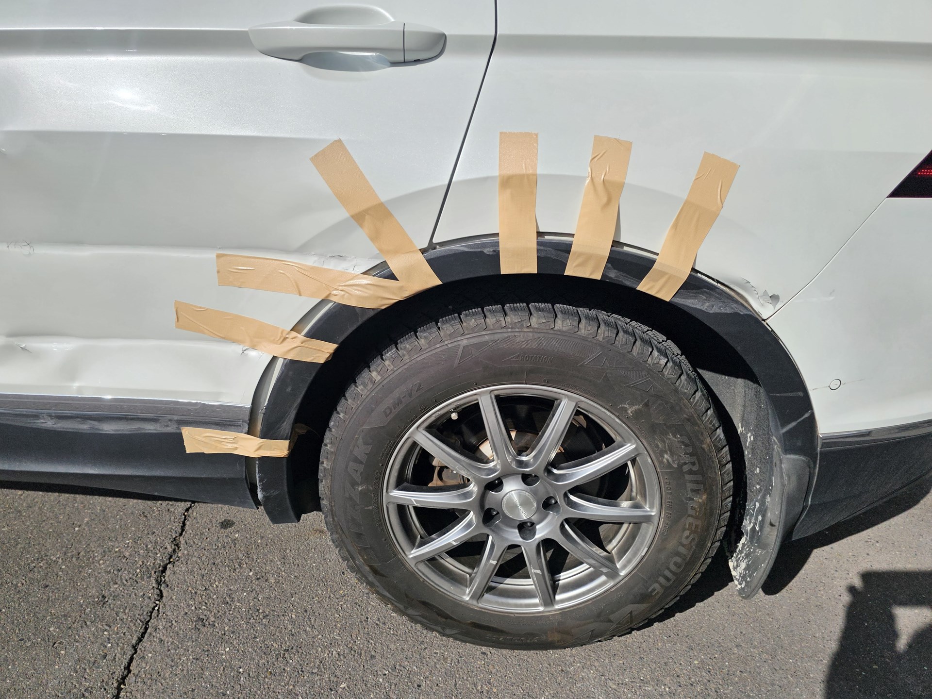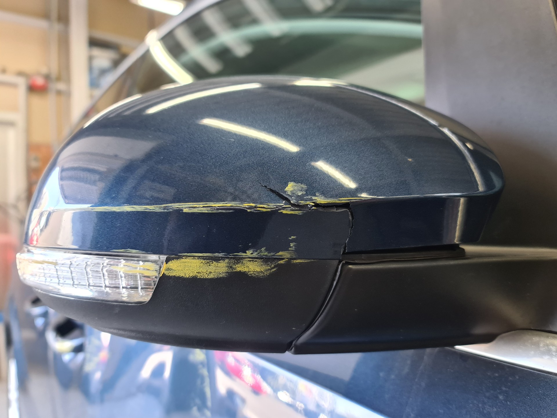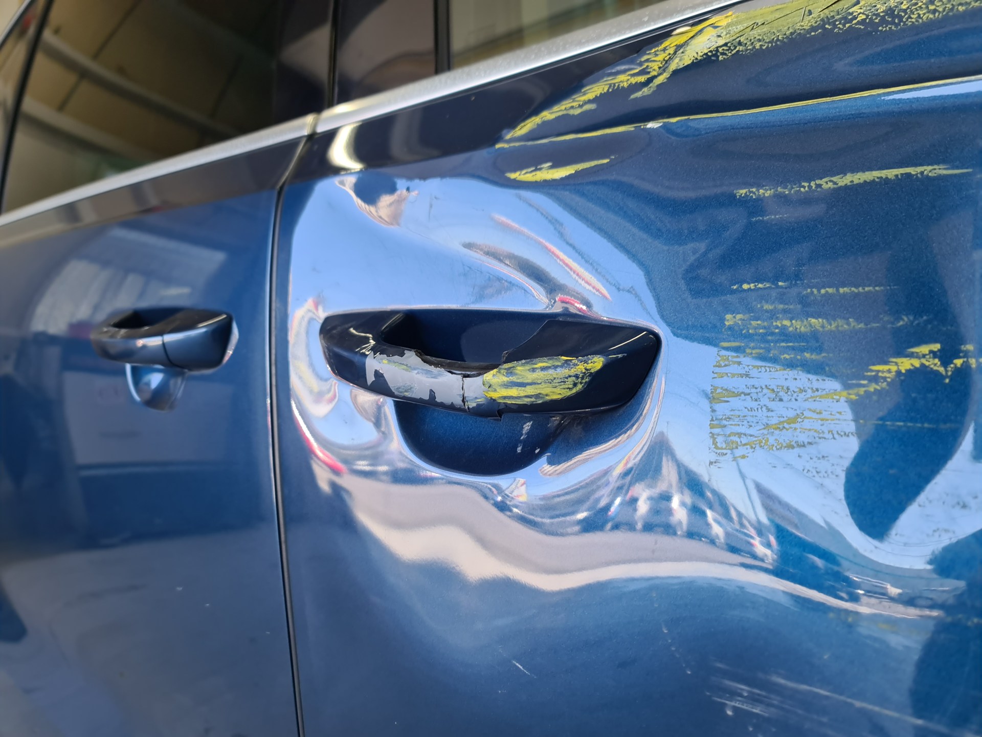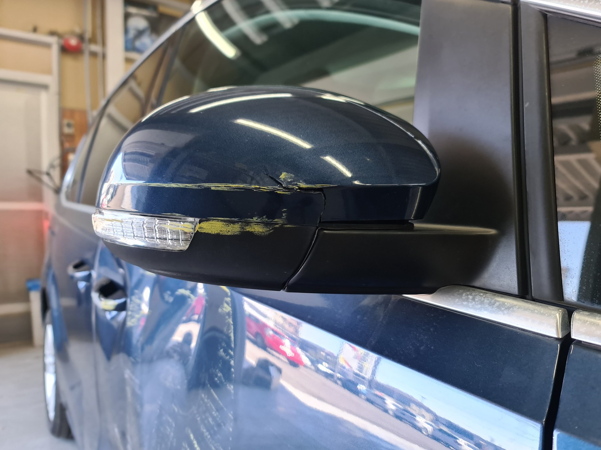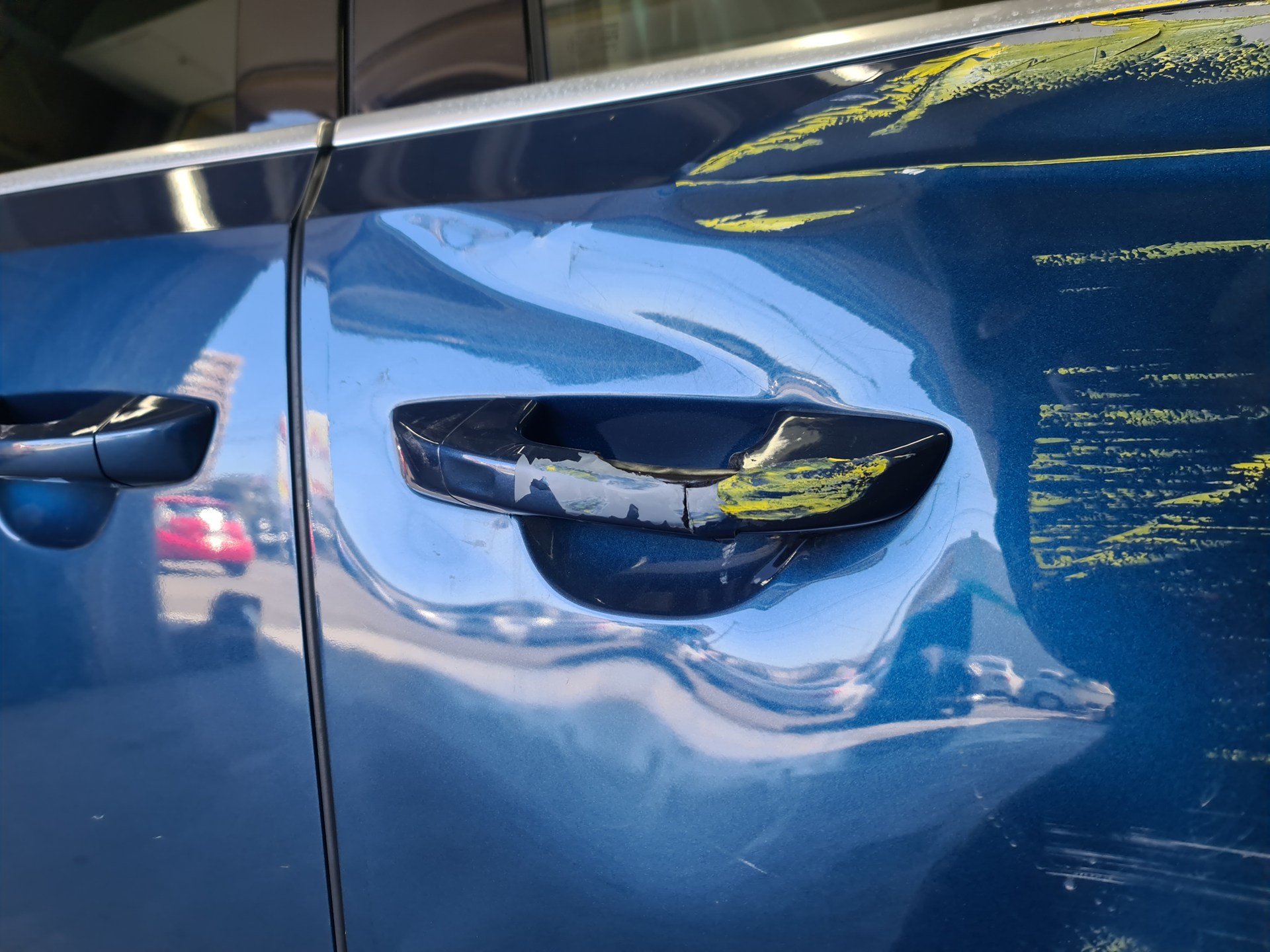 パサートです。嫌なところが凹んでいます。 下部のシボパーツまで傷が入っていますので、こちらは交換です。