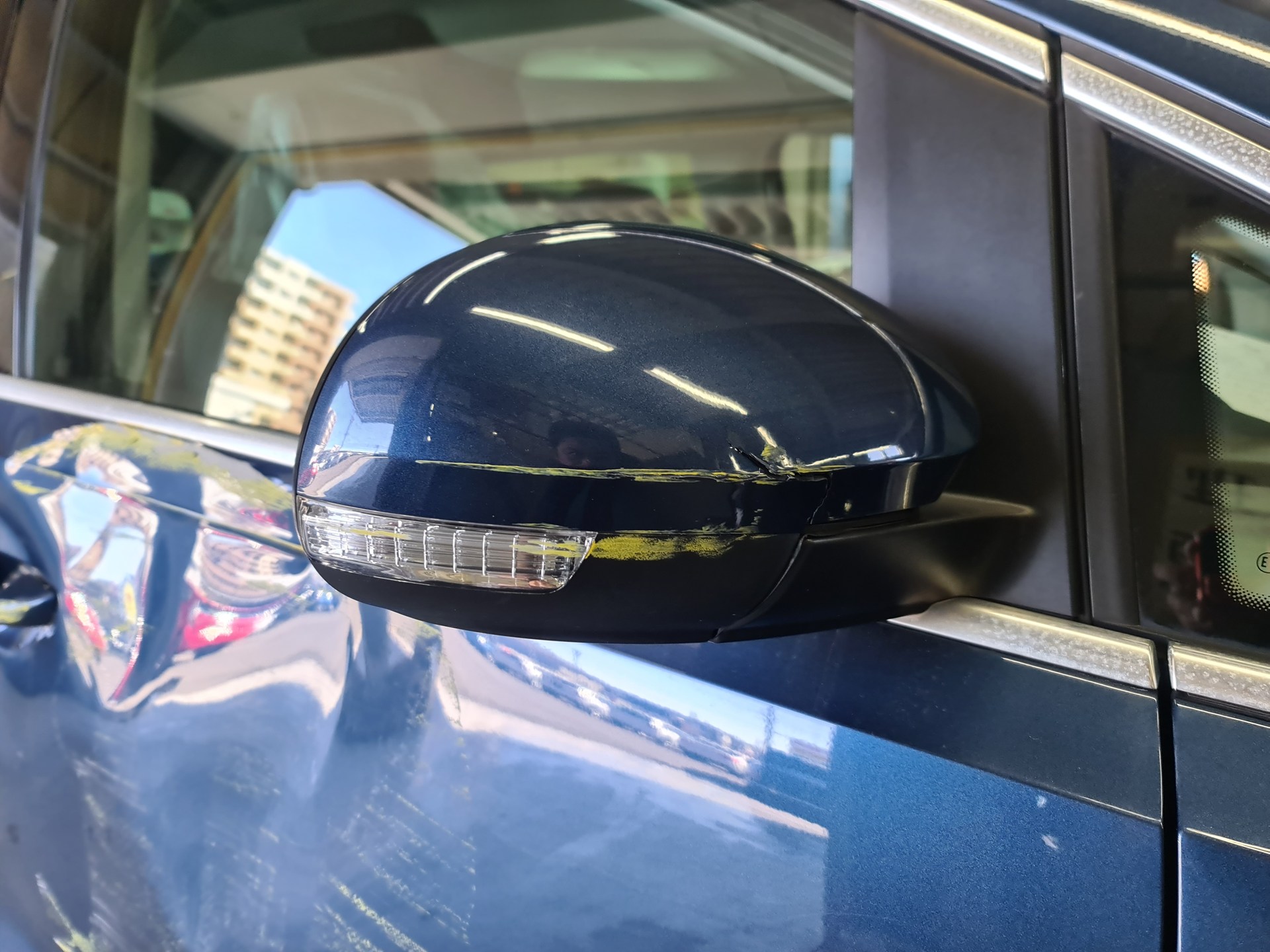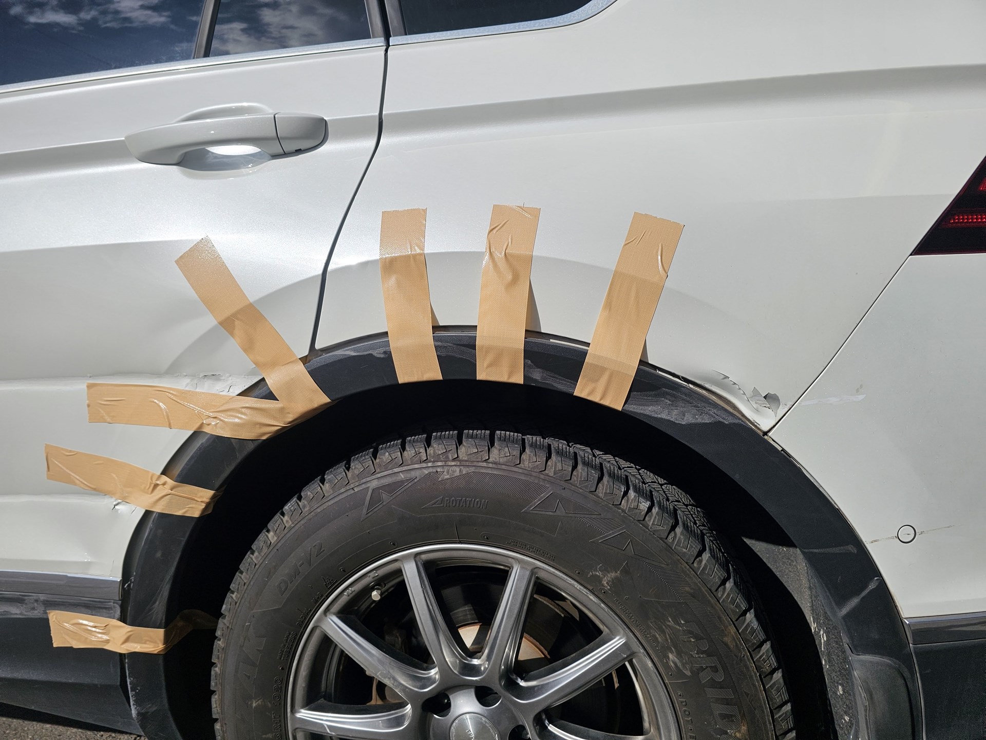 駐車場から、バックで出るときに、右の柱に気づかず、ぶつけてしまいました。