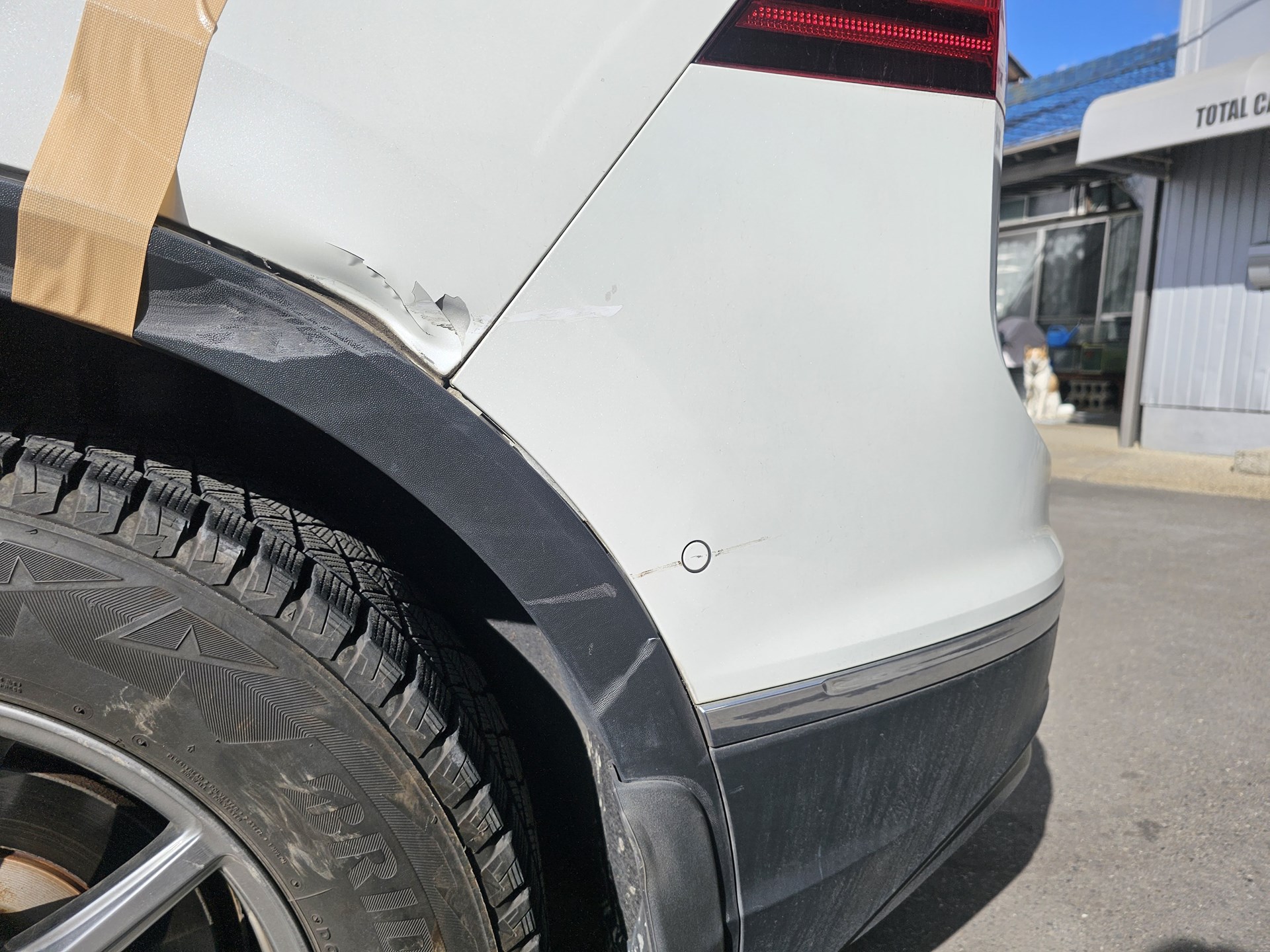 | パサートヴァリアント左リヤバンパー バックで大きく凹ませる |