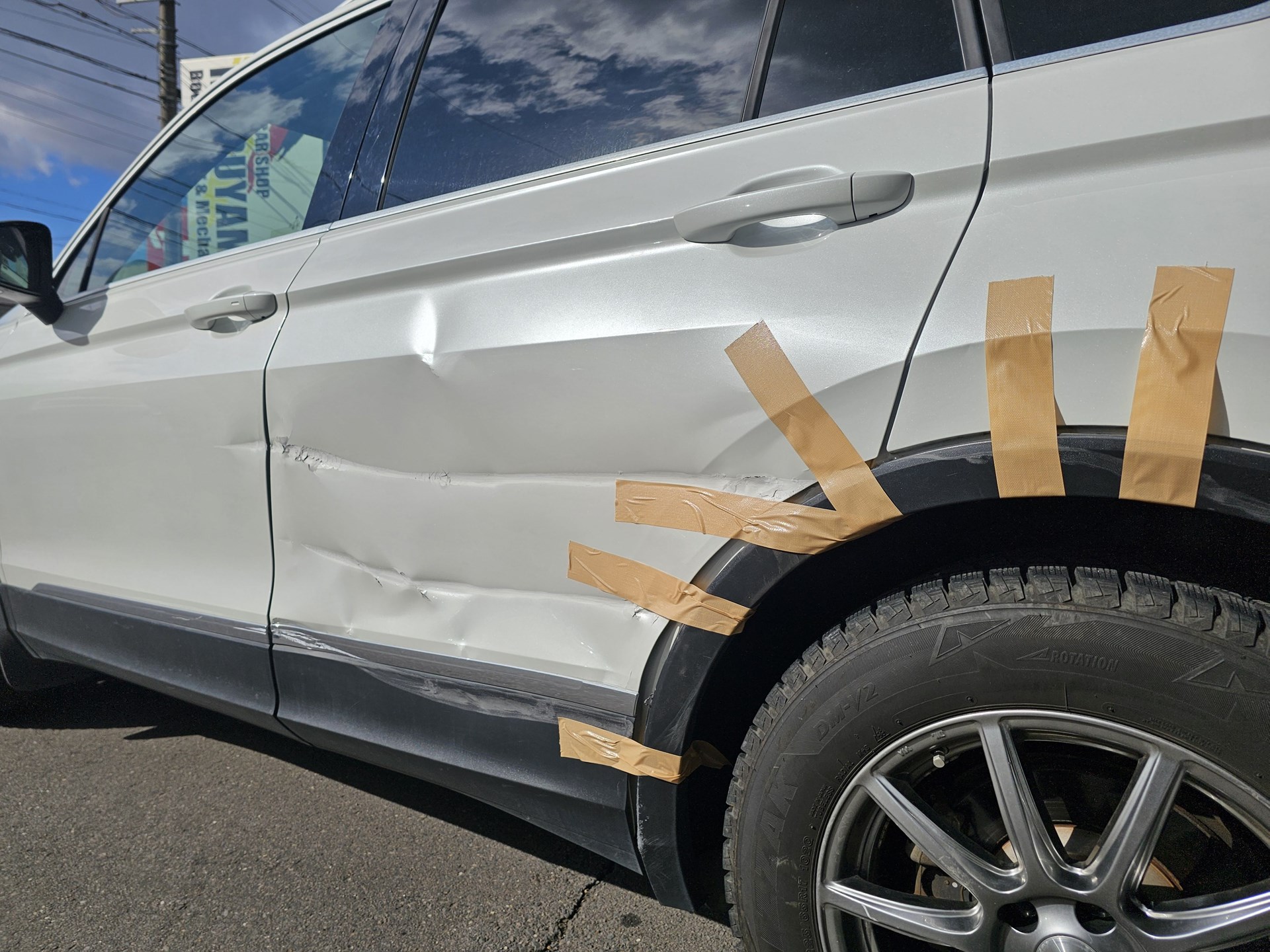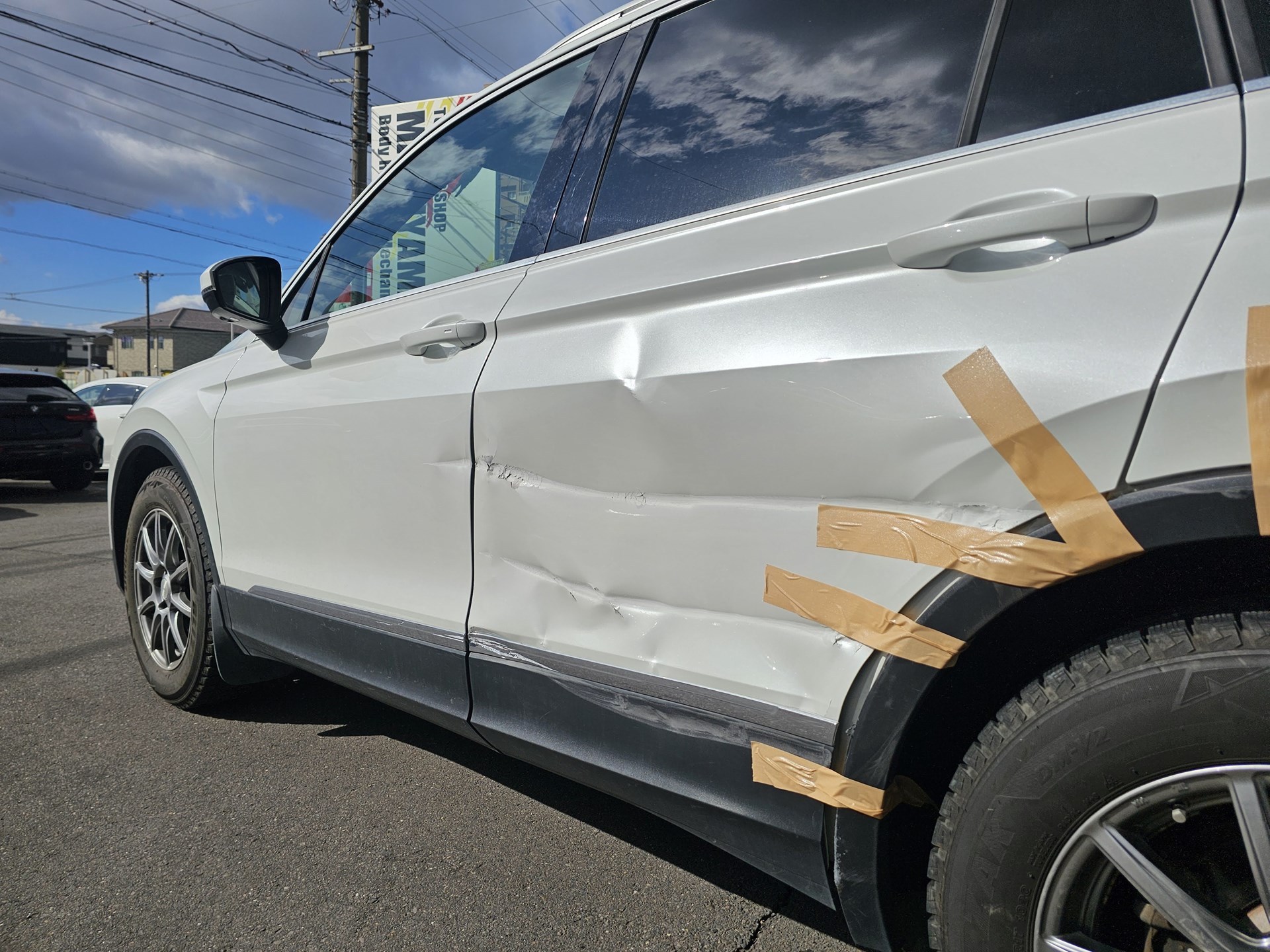ゴルフ トゥーランの左側面巻き込み事故。他社では高い値段を言われ、当社に救いを求めに。