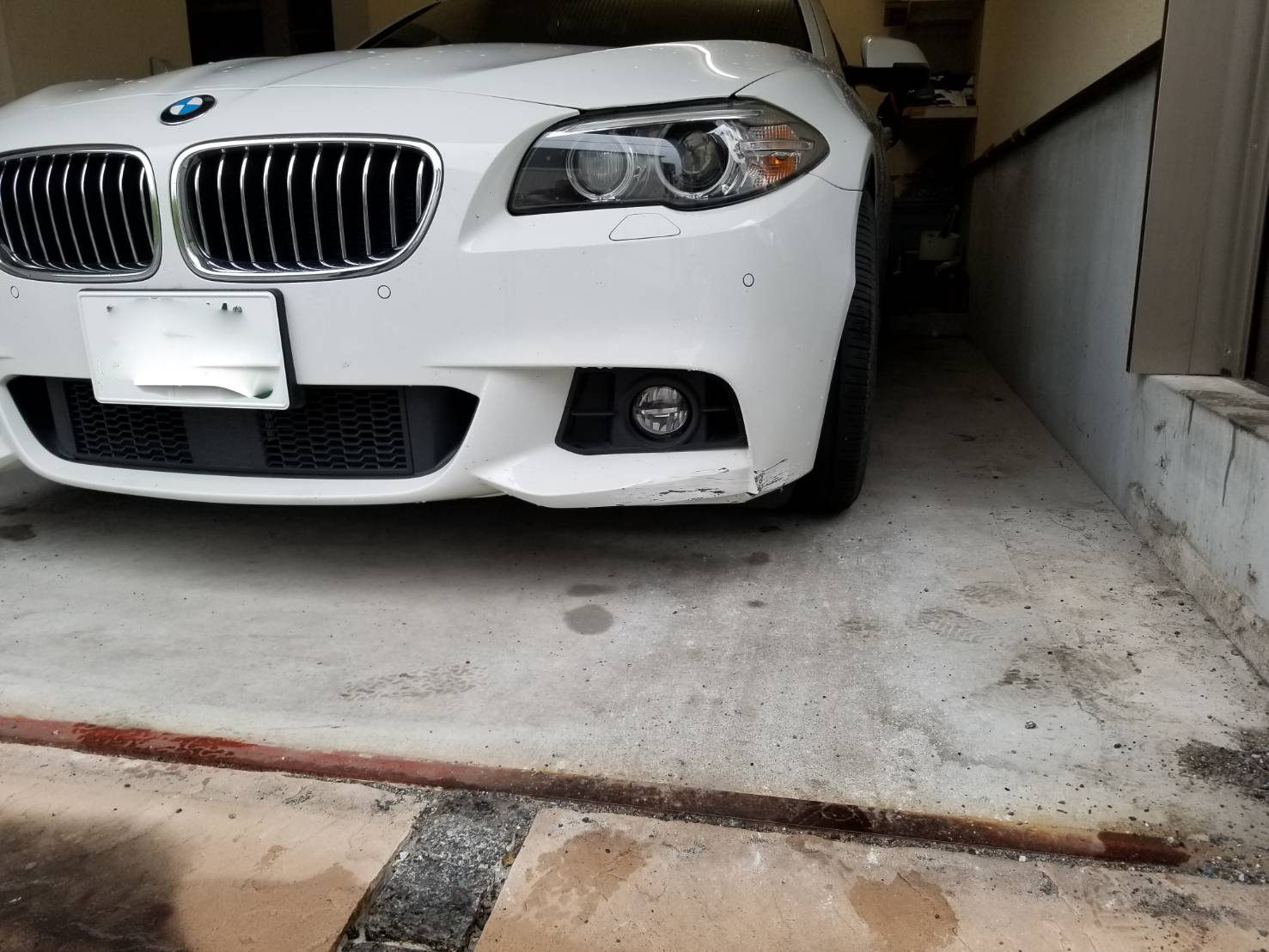 F10 BMW5 Mスポ 左フロントバンパー 変形潰れ切れ