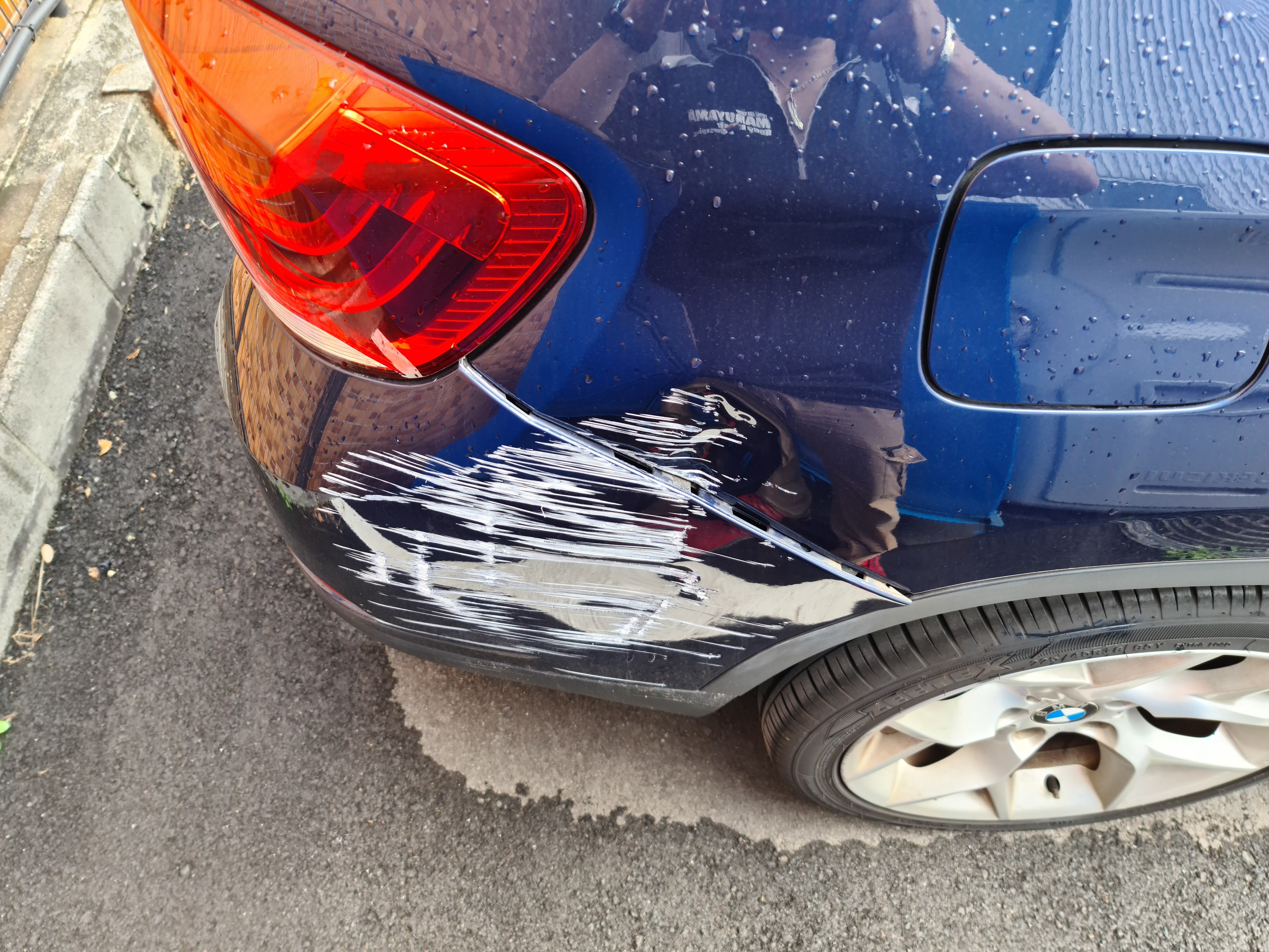 | F30 BMW3 GT グランツーリスモ 左側面 巻き込みガリ傷 |