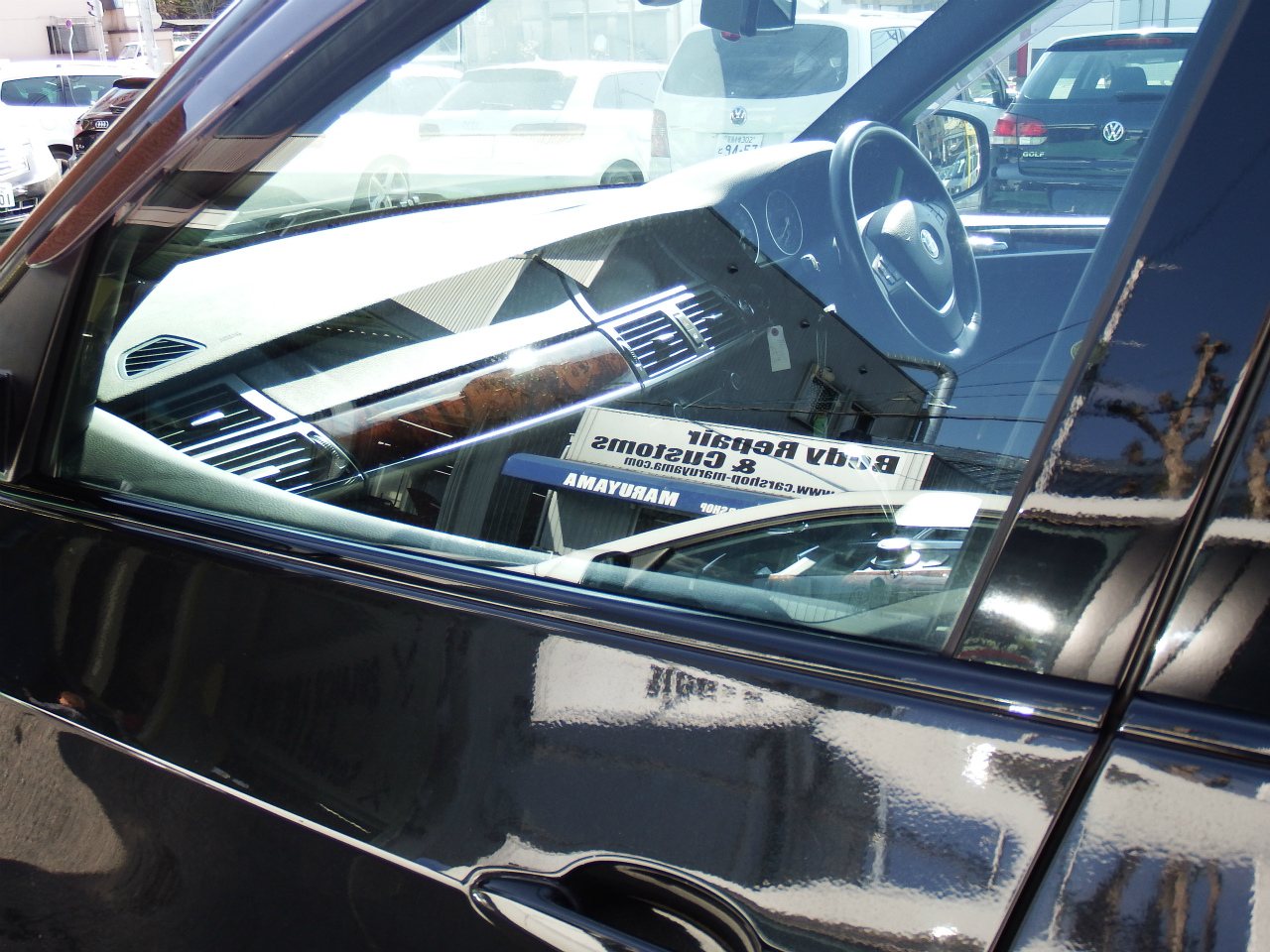 | BMW5 ドアサッシ モール 水垢、ウォータースポット跡 塗装 |