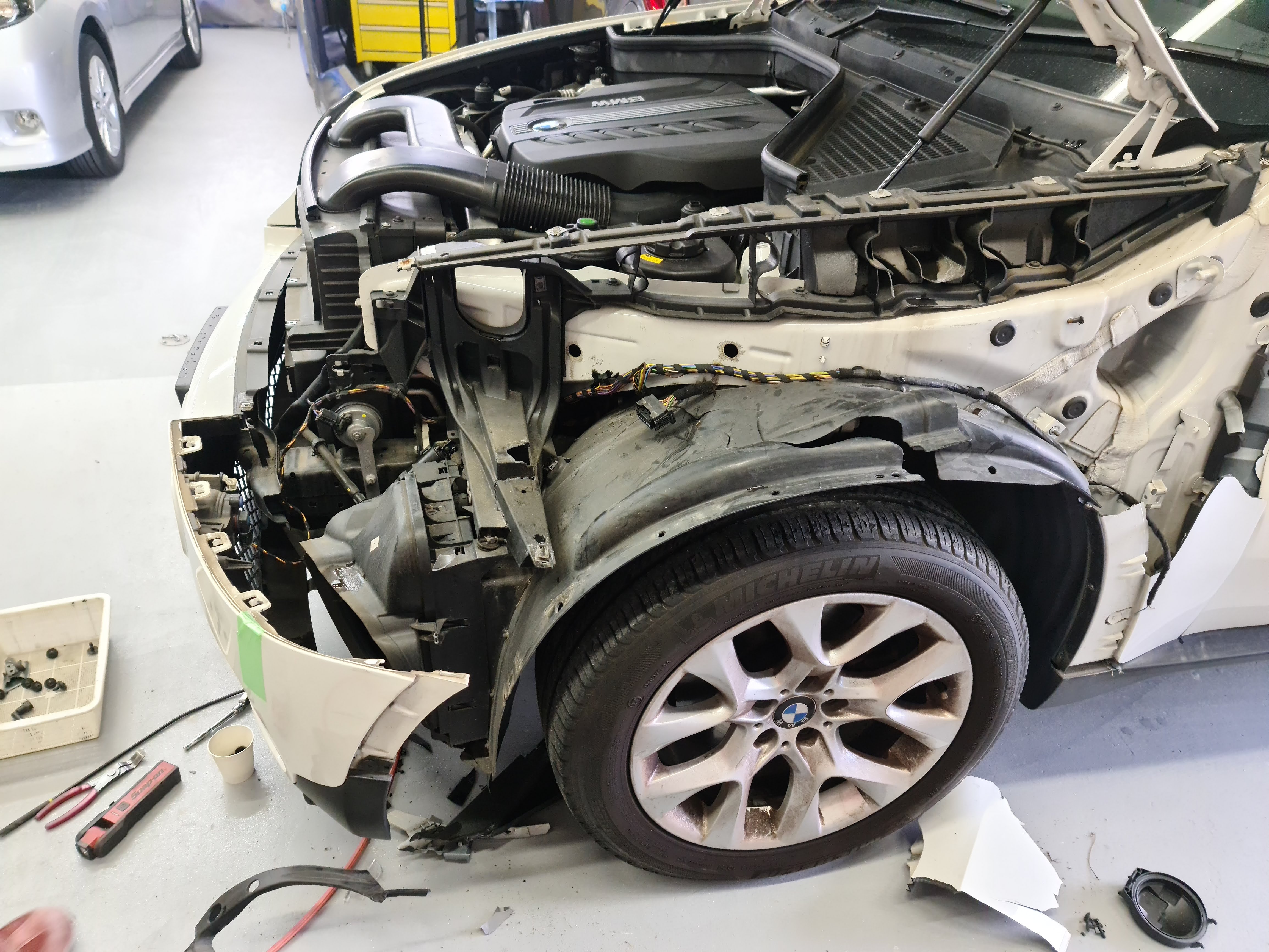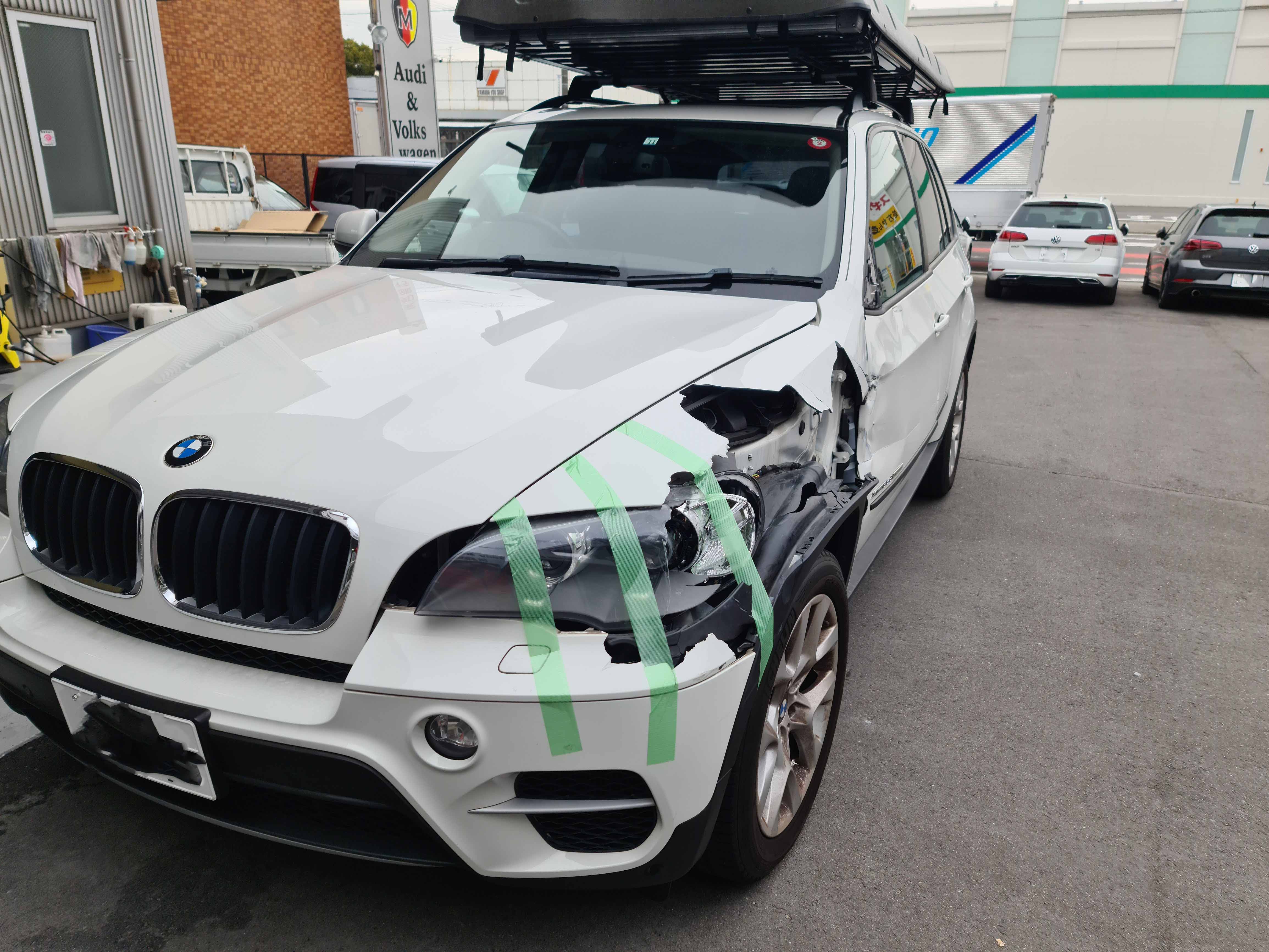 | E70 BMWX5 左フロント トラックに追突する |