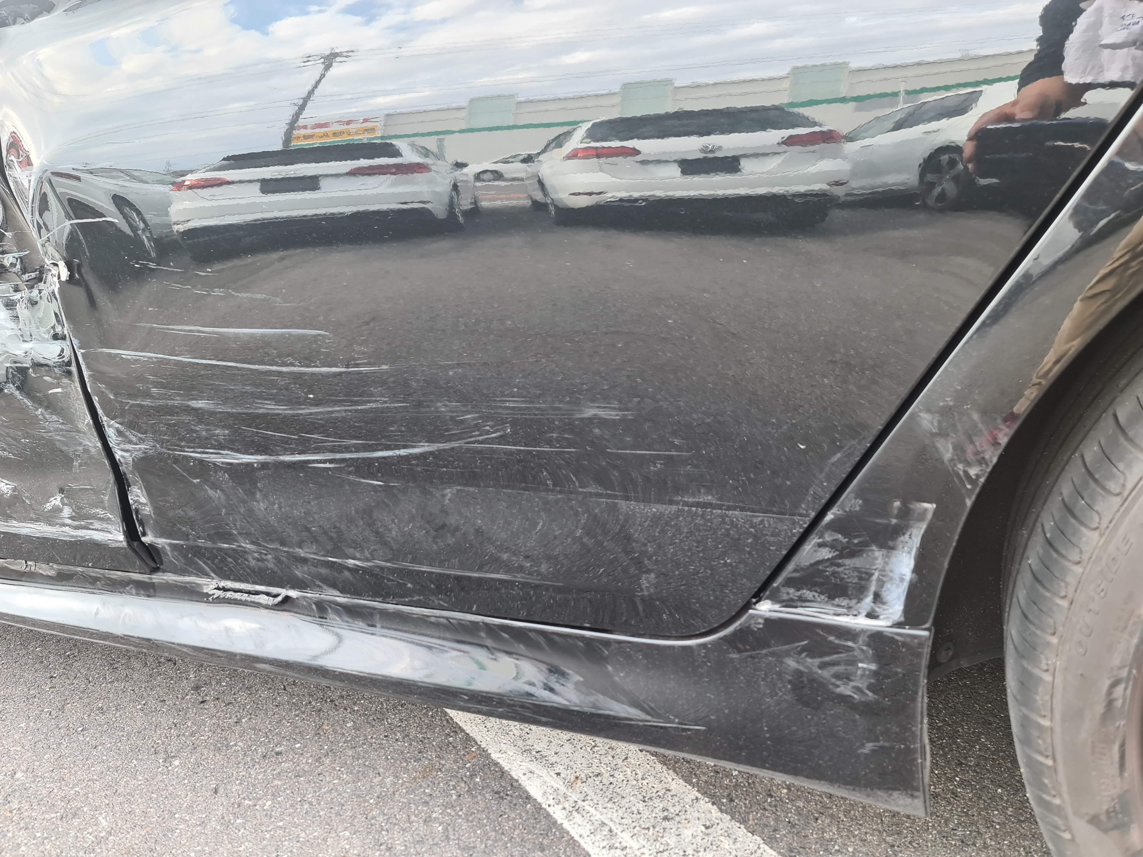 高速道路で、居眠り事故。 左側面を全面ぶつけてしまっています。