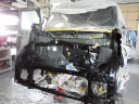 板金の開始です。 そして、切開して溶接交換したフレームを塗装していきます。