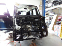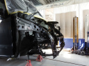| 板金作業中です。フレームからしっかりと直していきます。 |