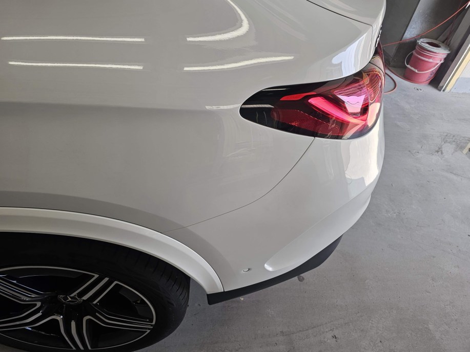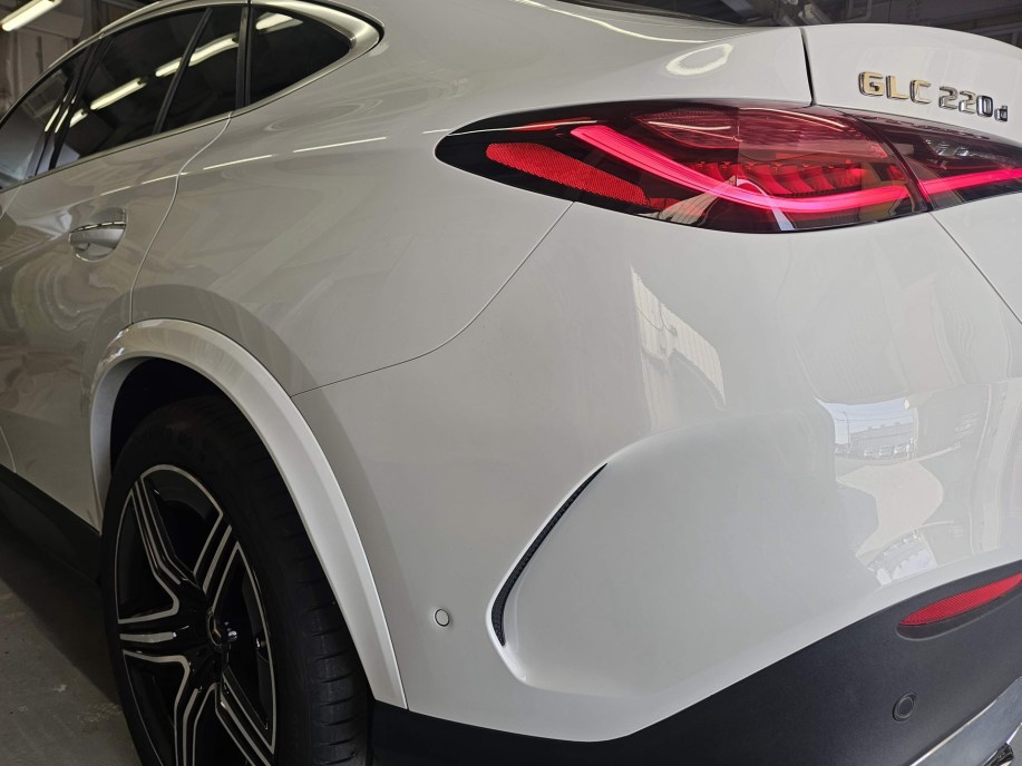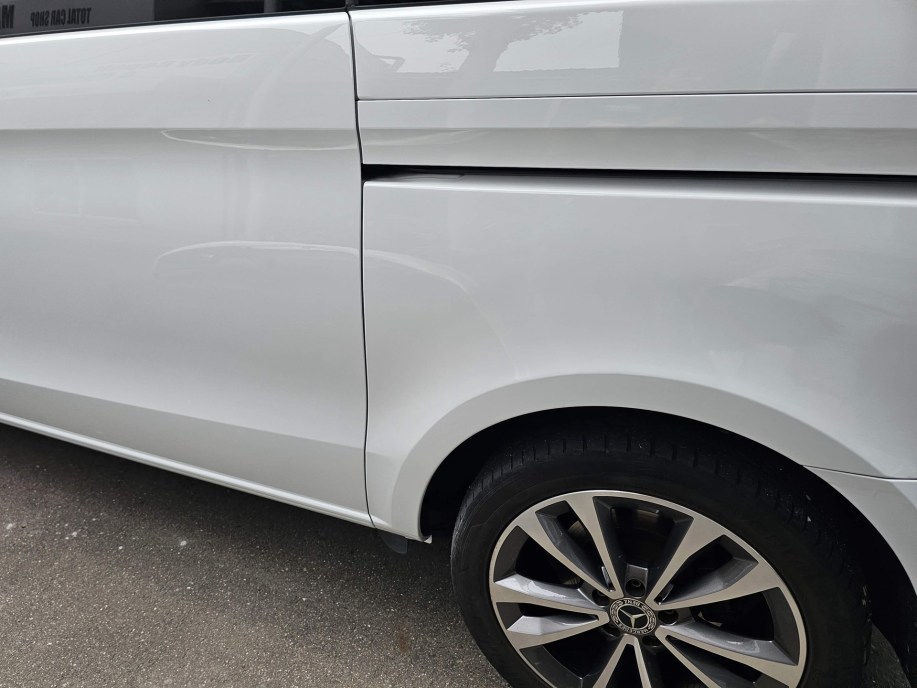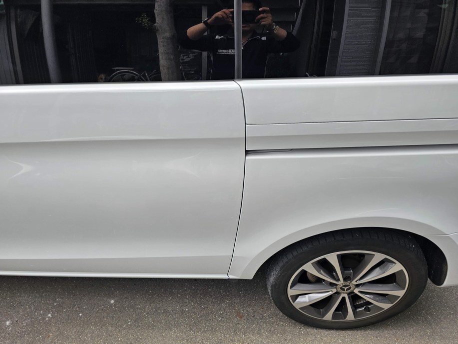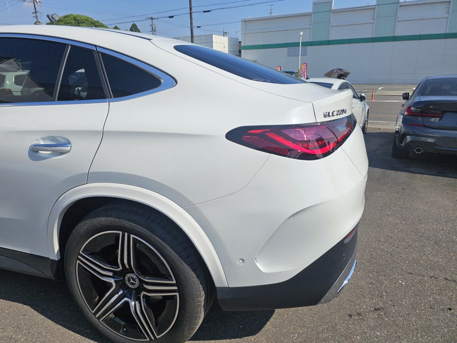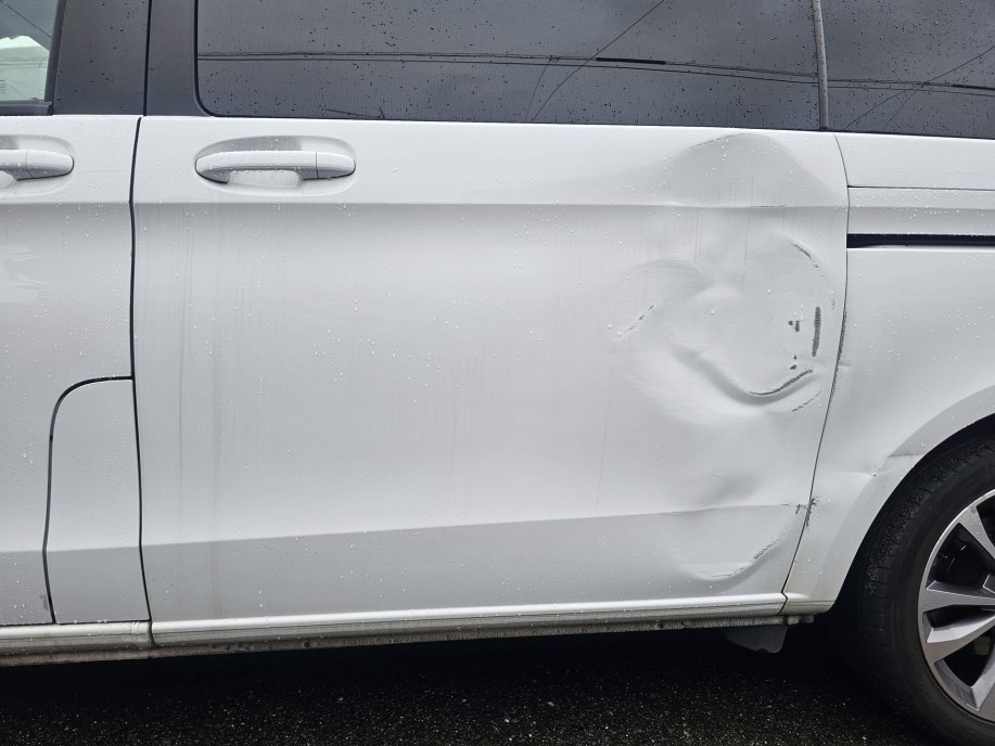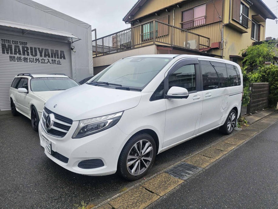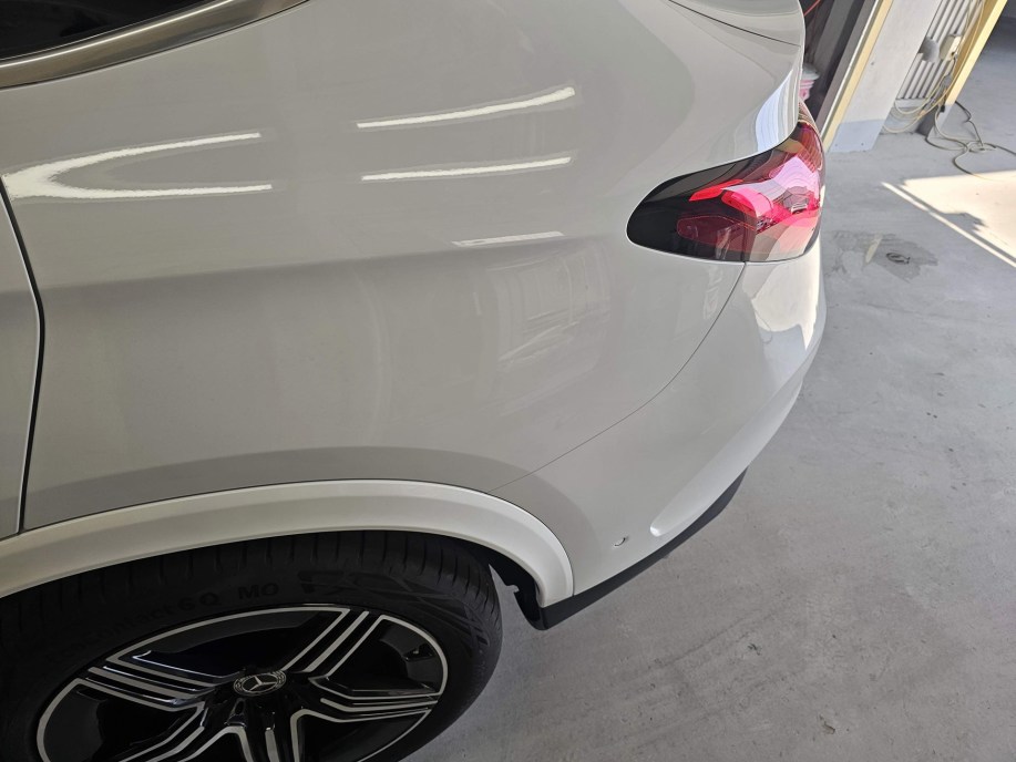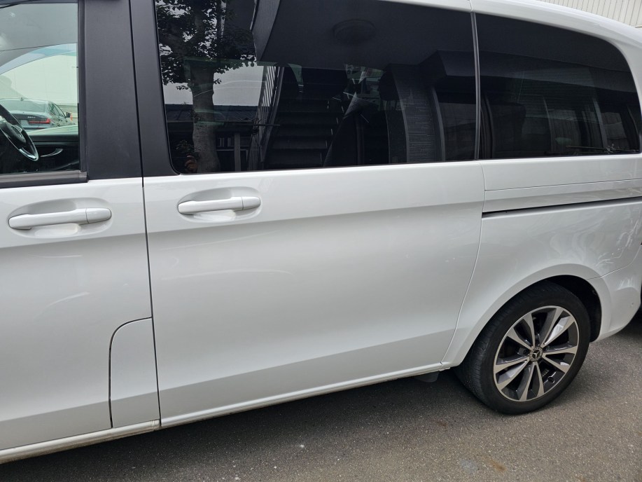 新しい香りのする新車ベンツAクラスの入庫です。右側面リアを、がっつり巻き込んでいます。
