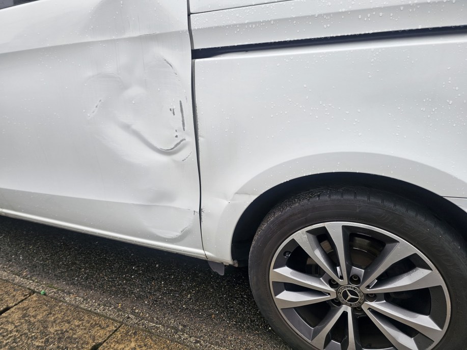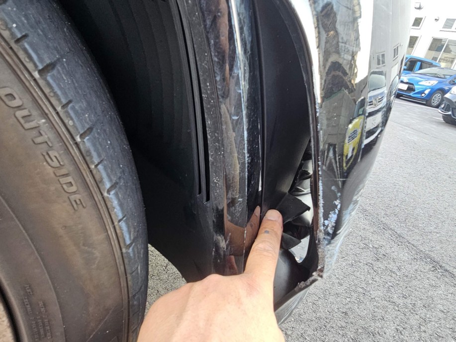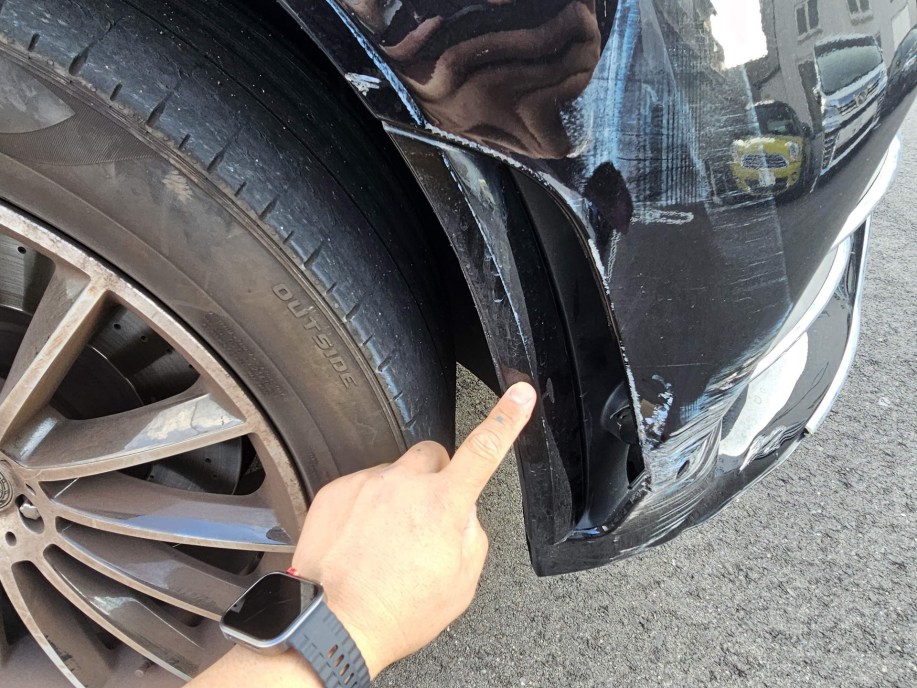 W212 ベンツ E 左サイドエアロ 巻き込み破損