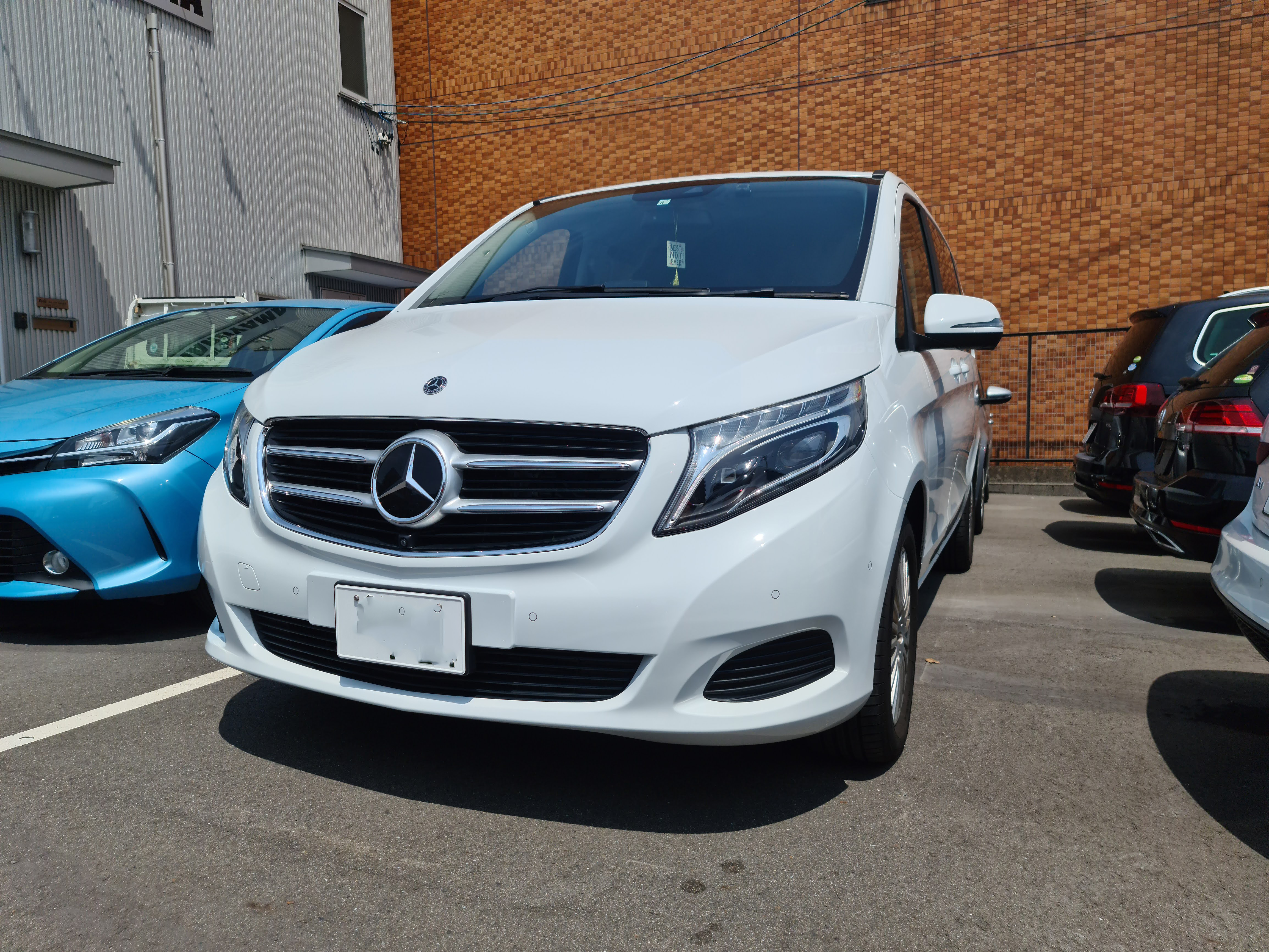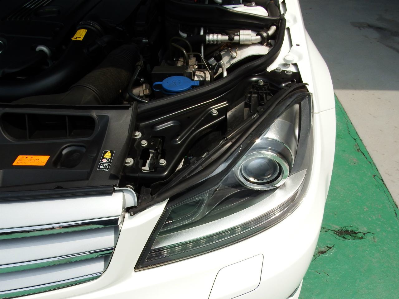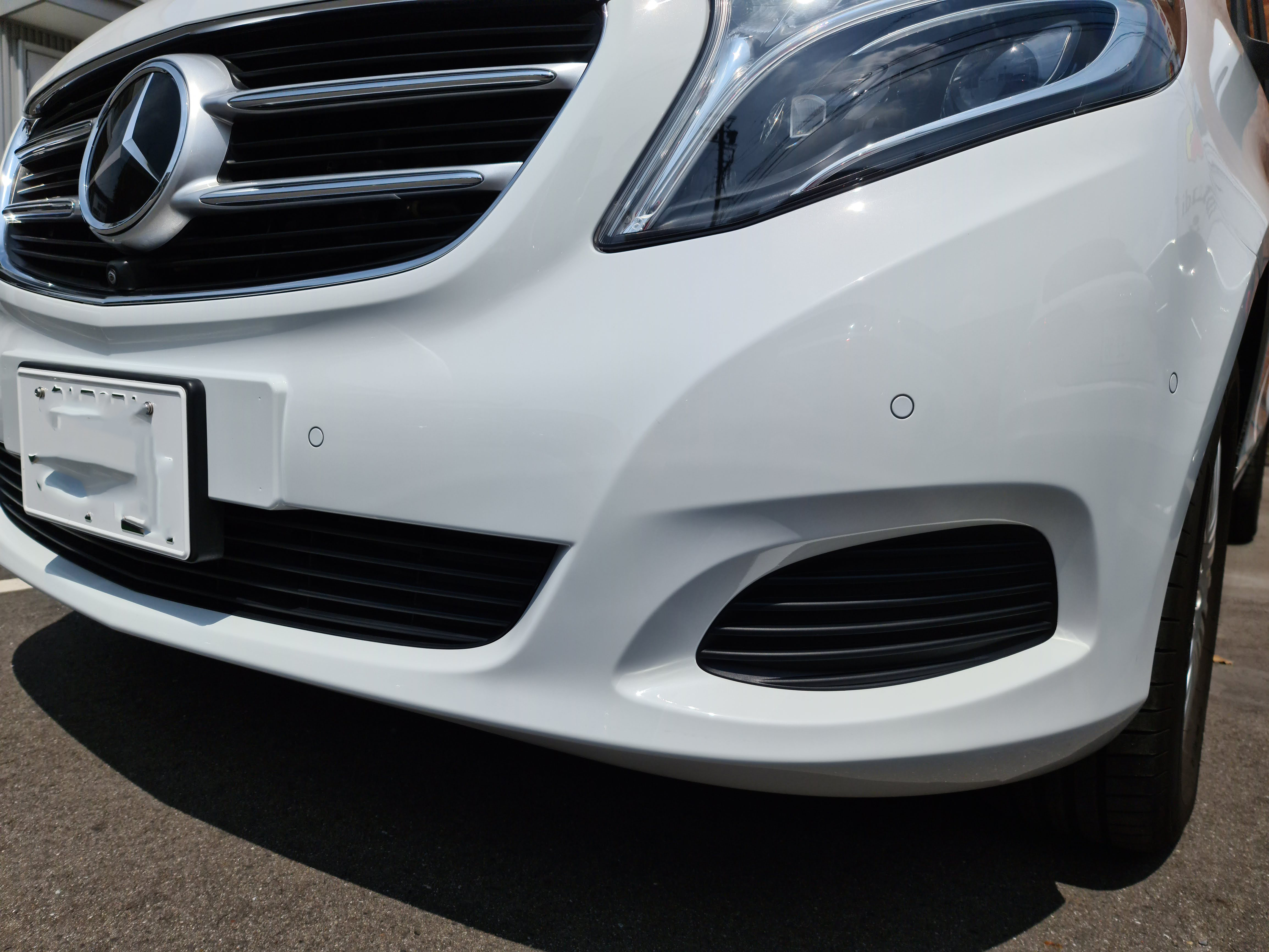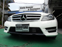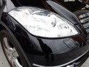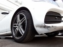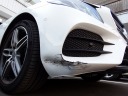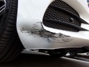 右側面を大きく巻き込んでしまったベンツ。 サイドエアロもひどく潰れています。