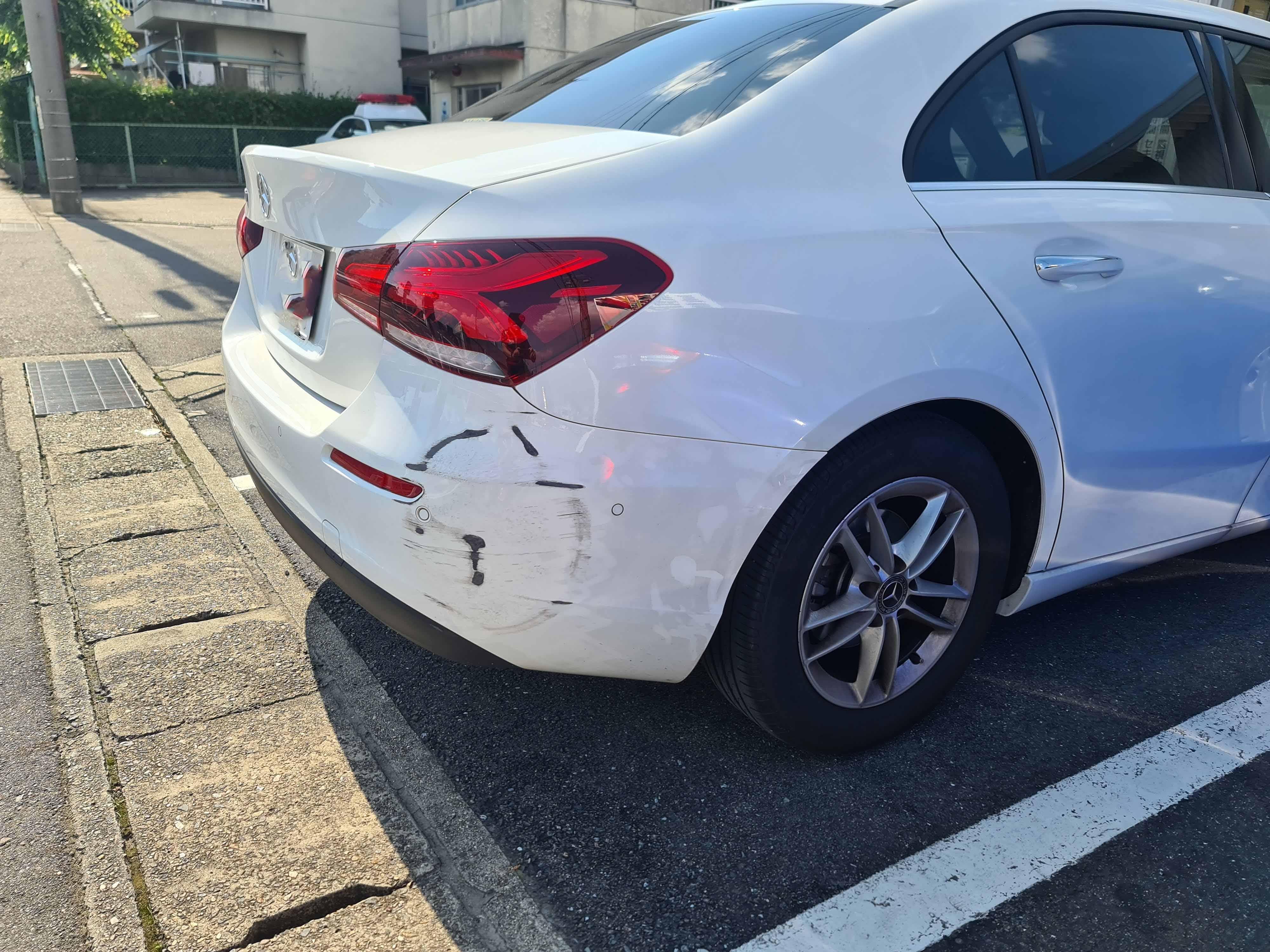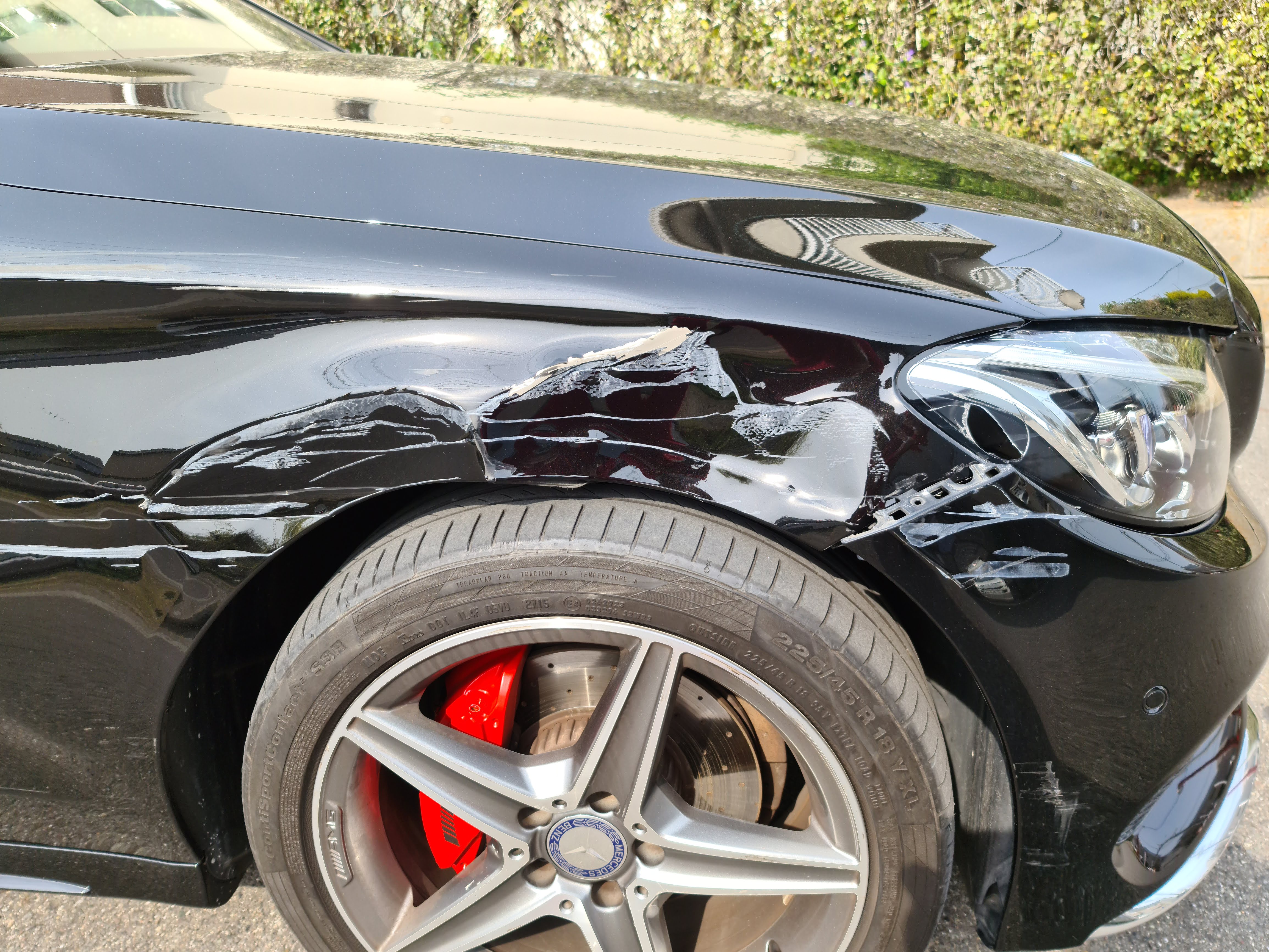 スリップ事故を起こし、ガードレールに激突。 高価なディストロニックセンサーを破損させてしまっています。