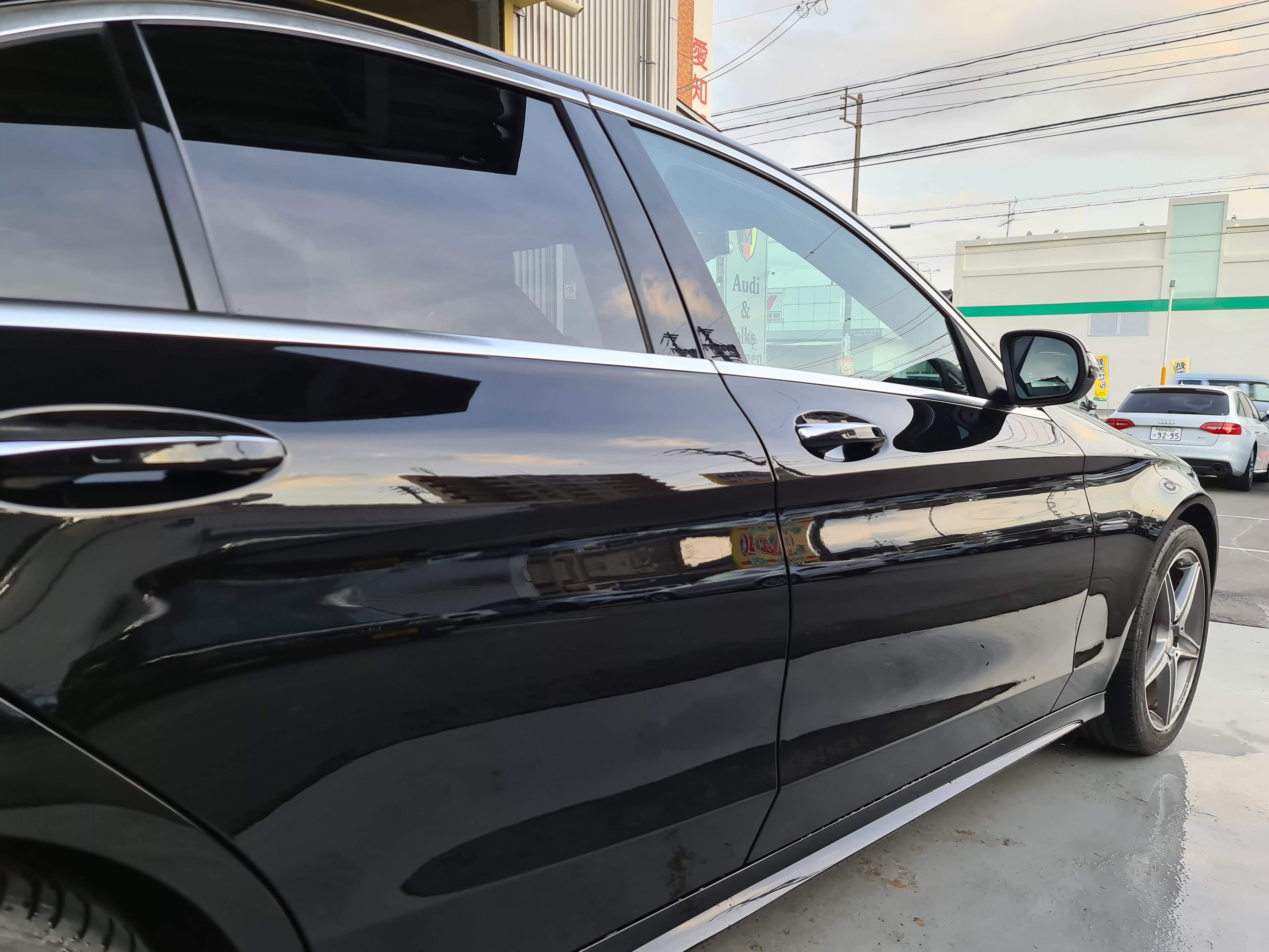 W205 ベンツC 左ハンドル 右側面トラックの荷台に衝突
