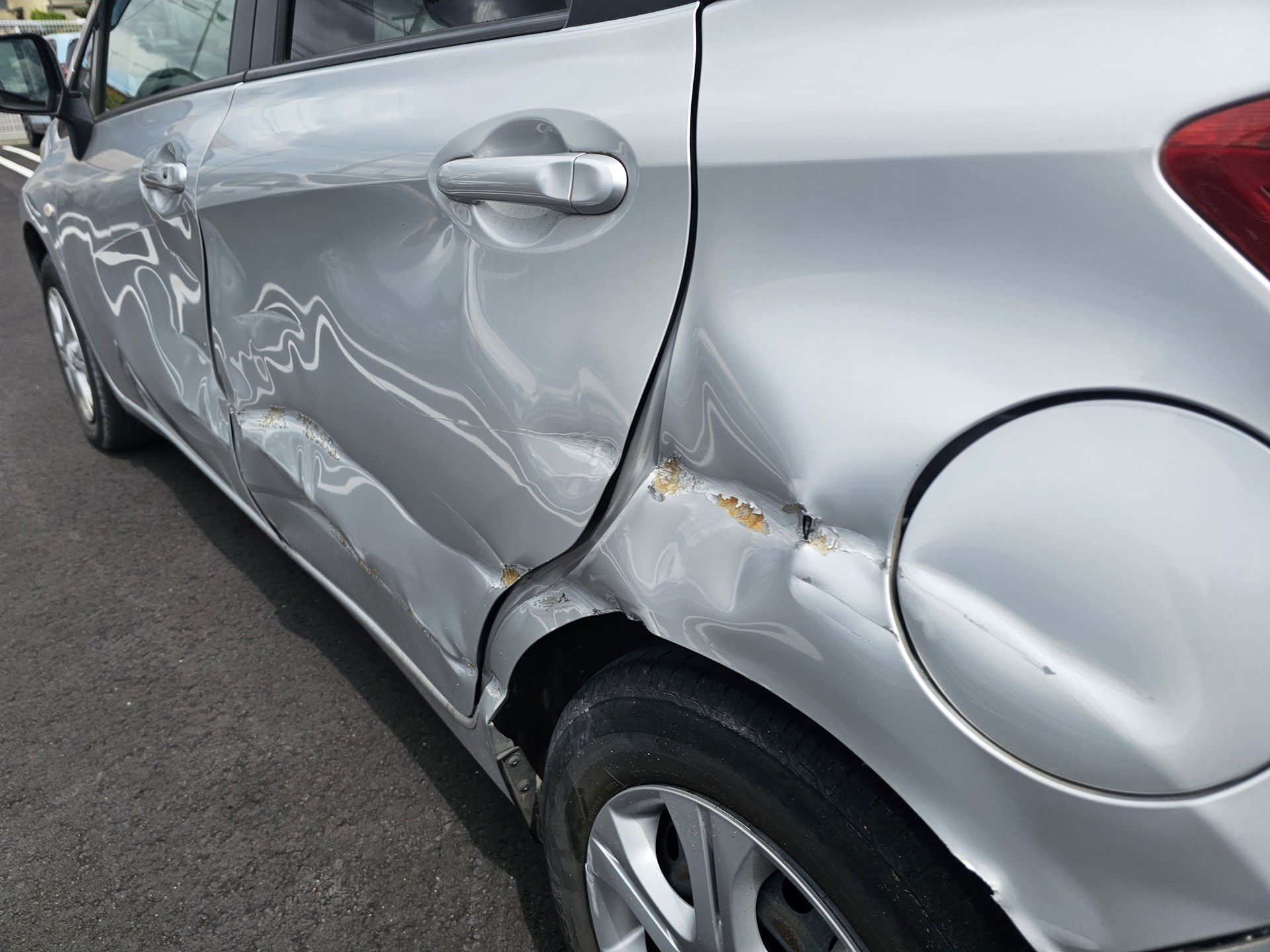 左側面を前から後ろまで擦っていってしまっています。