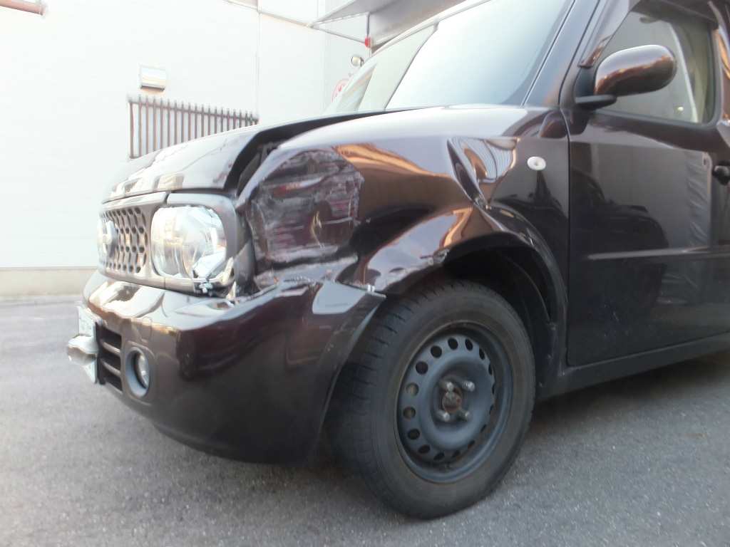 | キューブNZ12型 フロント事故事故 右足回り損傷 |
