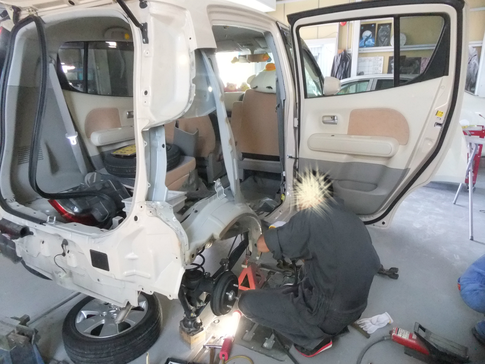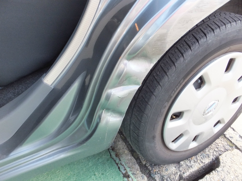| ティーダ バックで右後方部分を損傷 クォータパネル交換 |