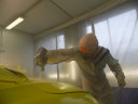外板の作業と同時に、エアバック交換作業もしていきます。