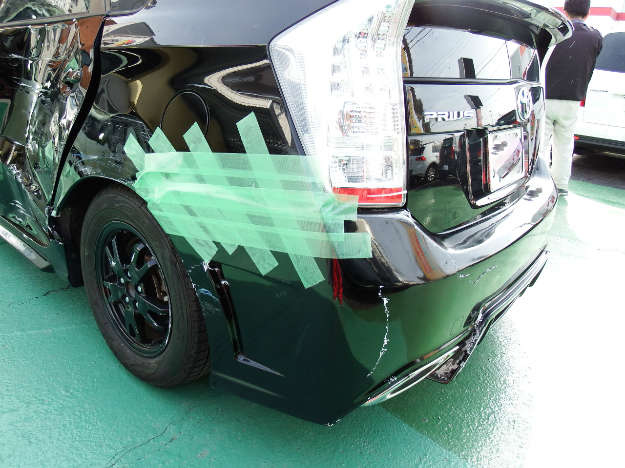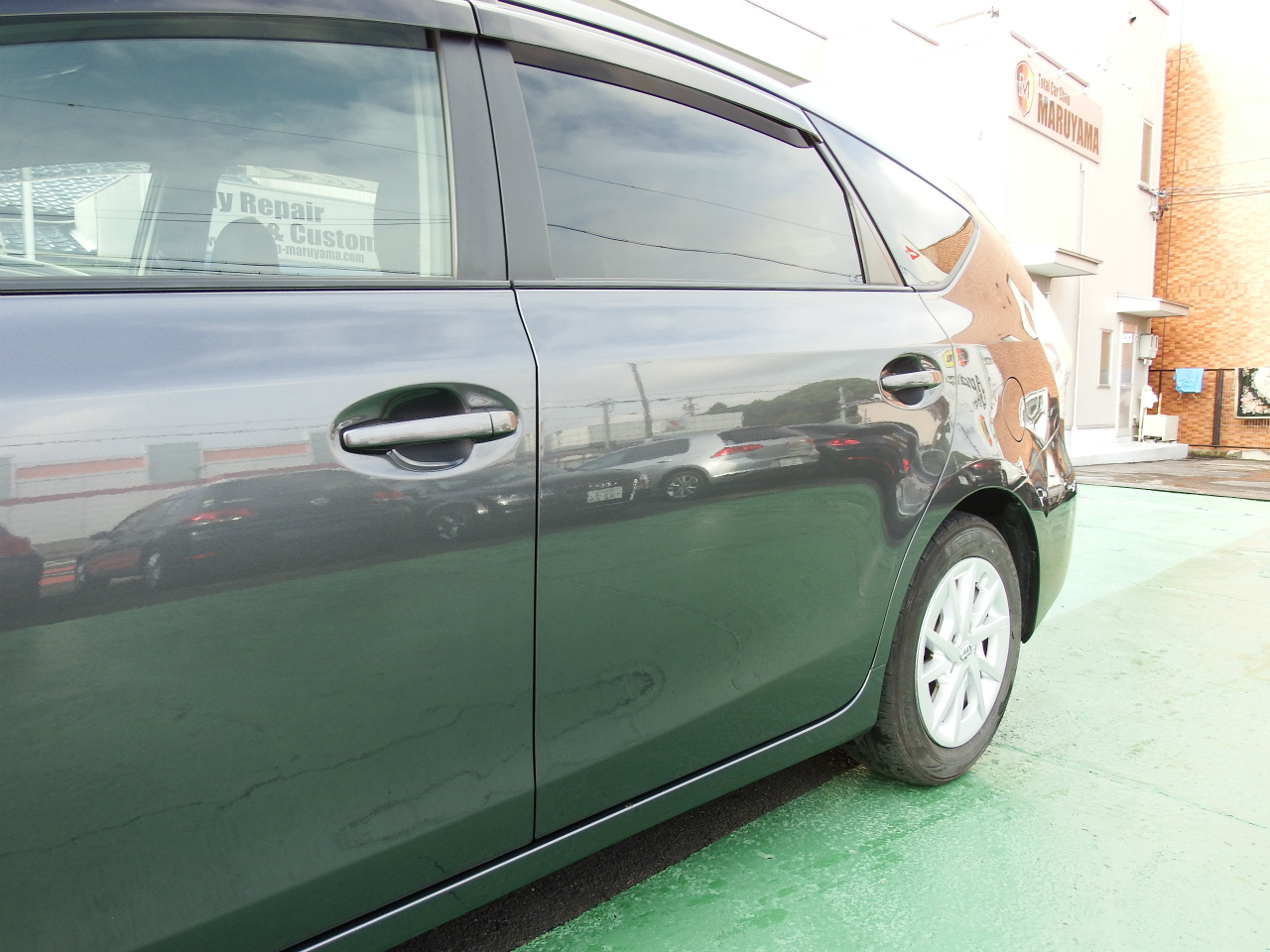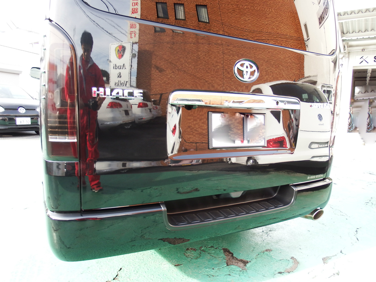 予算が浮いた分、リアゲートの凹みも塗装しました。