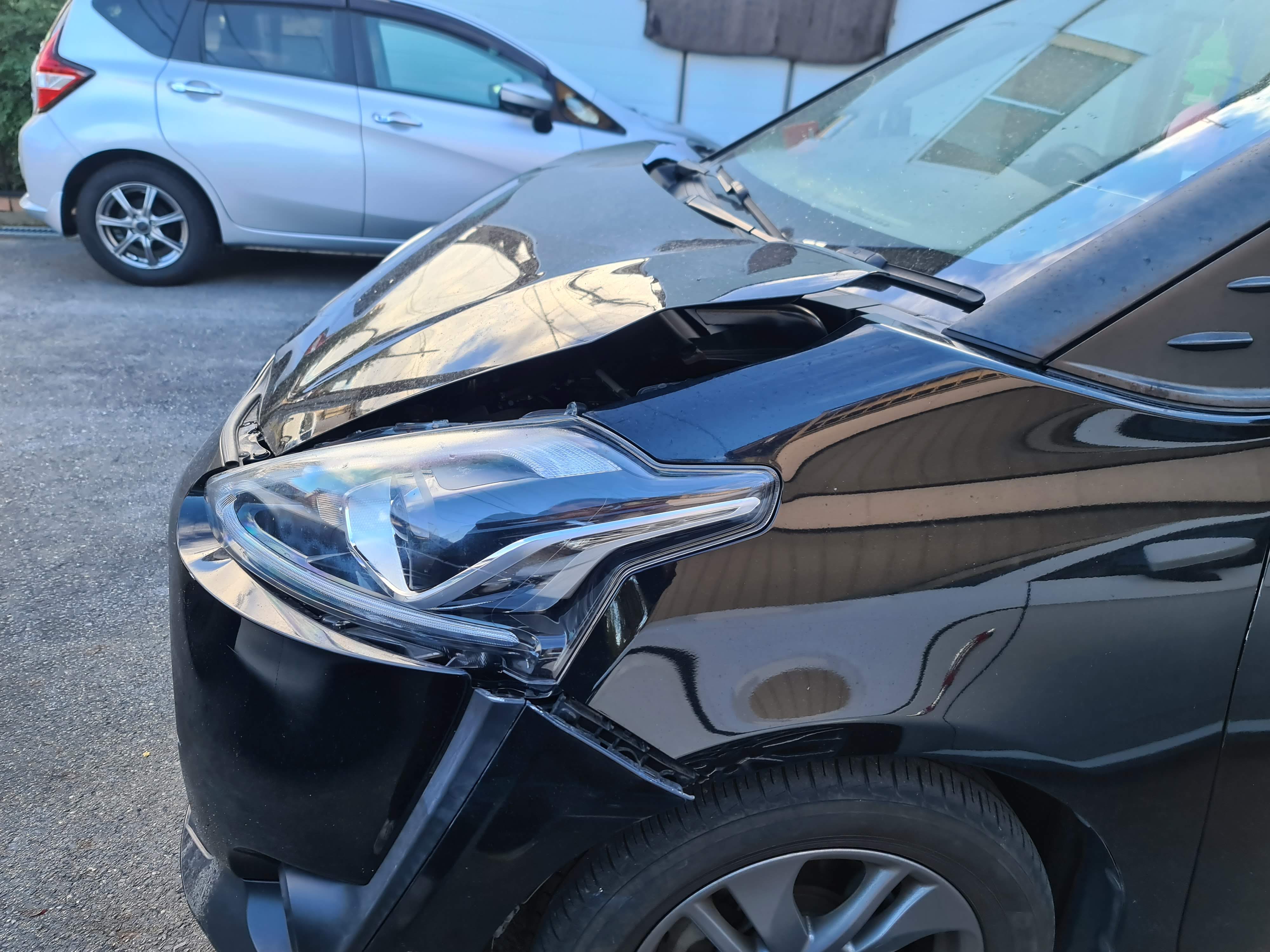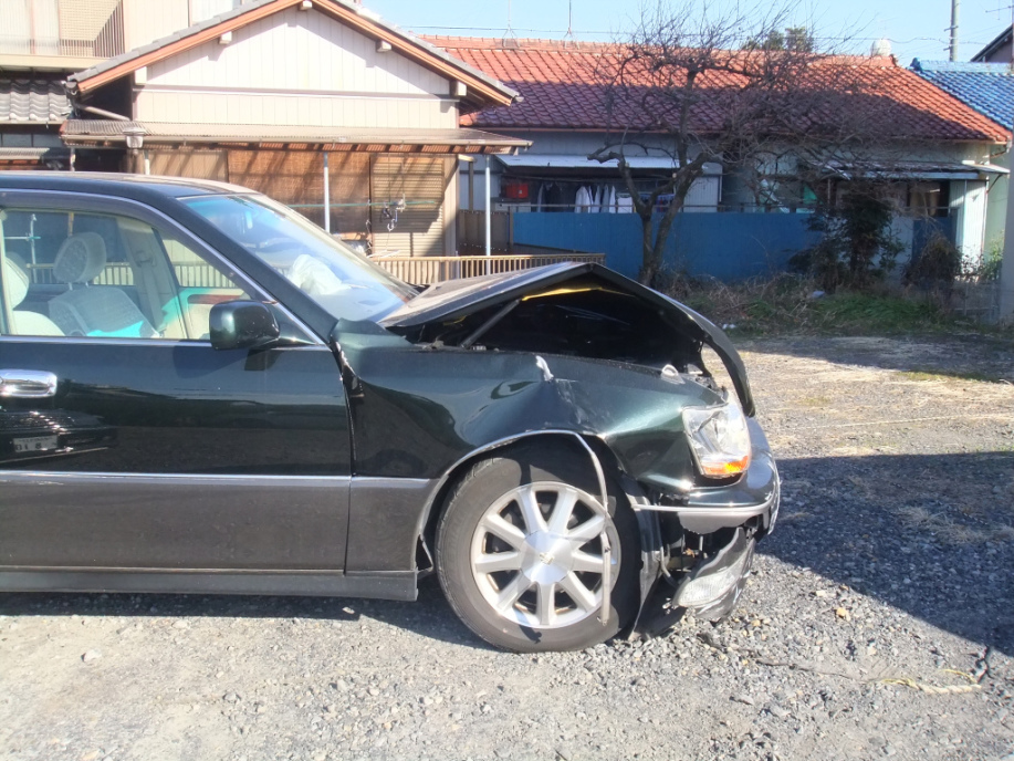 フロント大破事故です。交差点内の事故でした。相手の側面にぶちあたりました。もちろん相手車は廃車です。