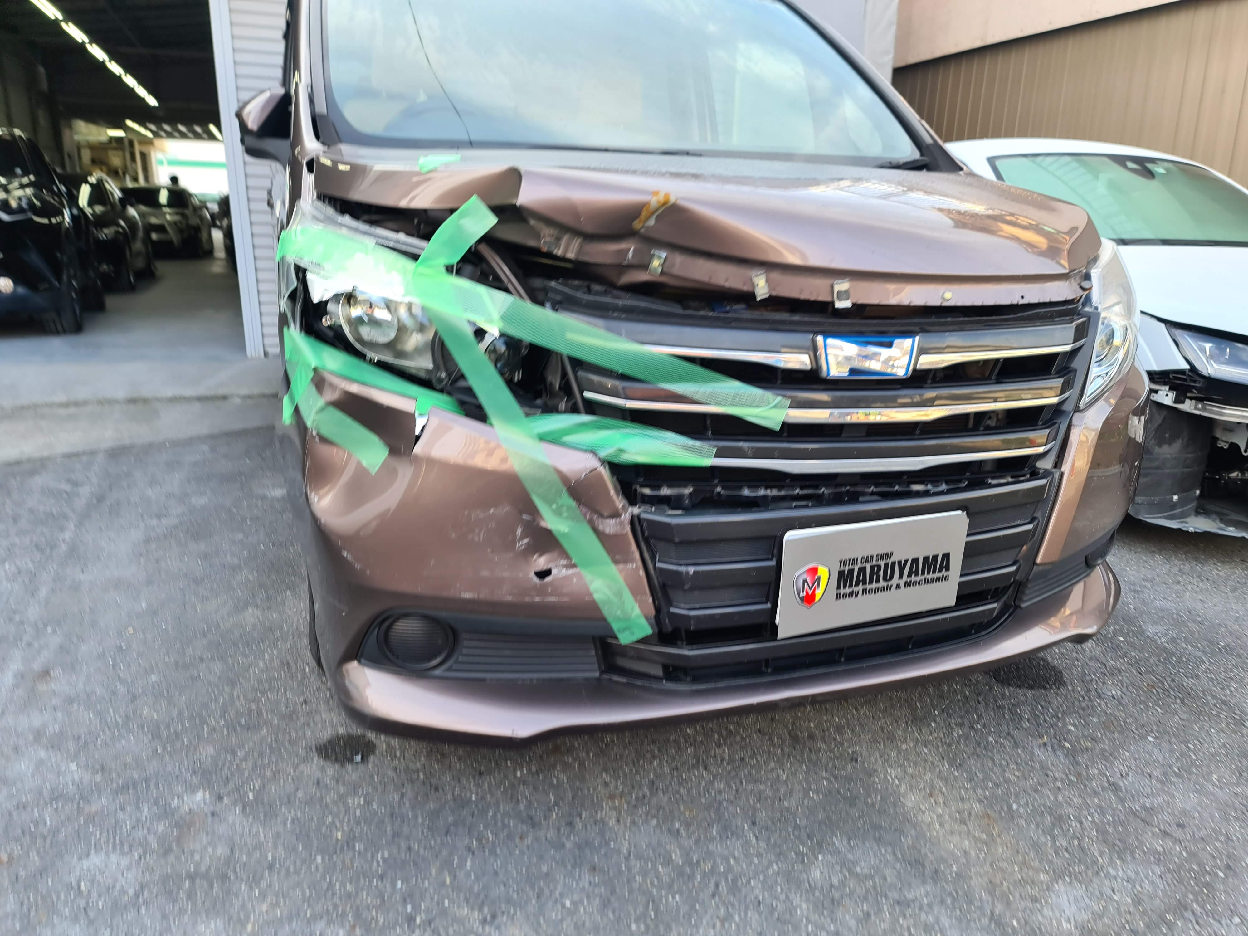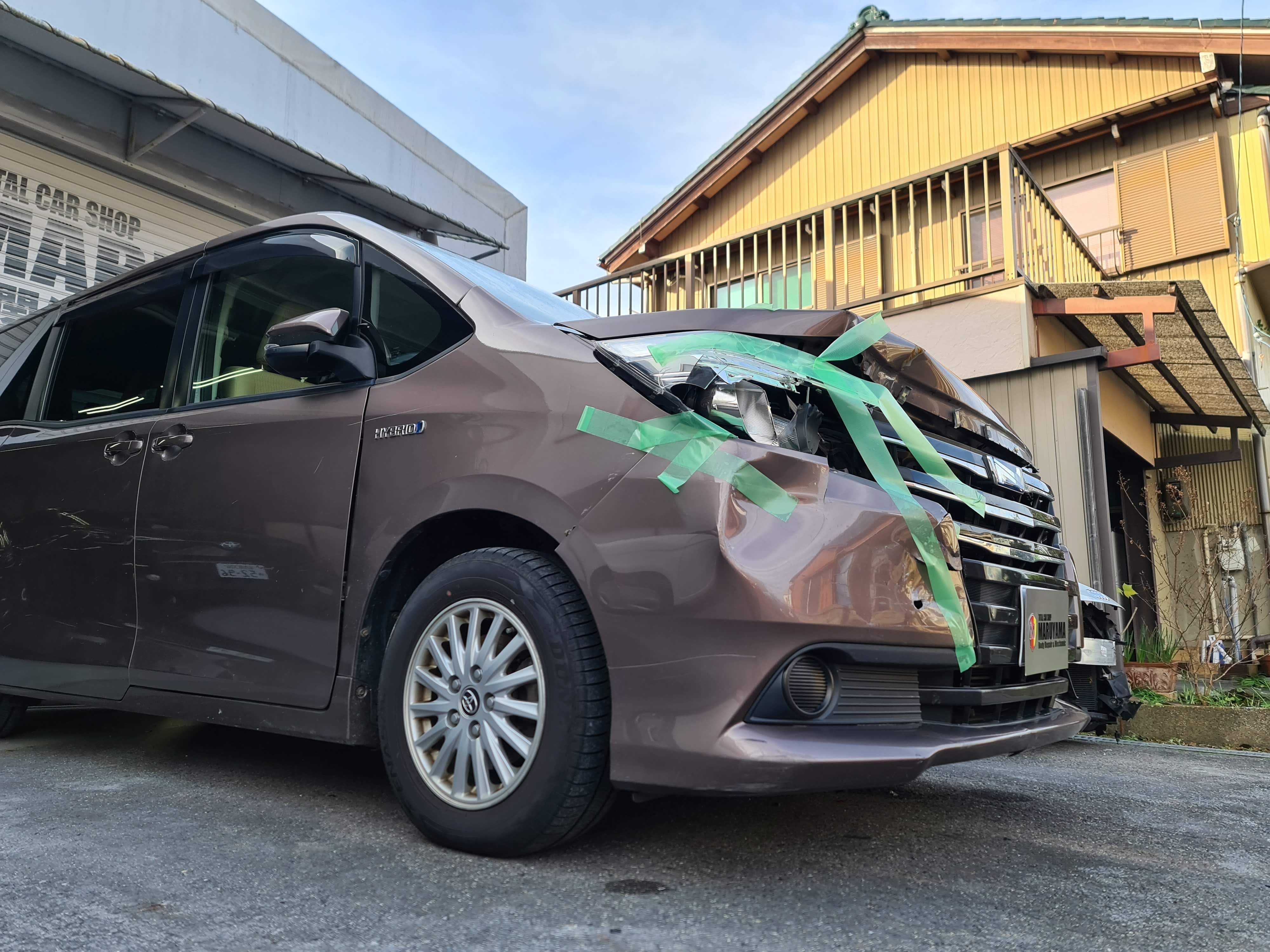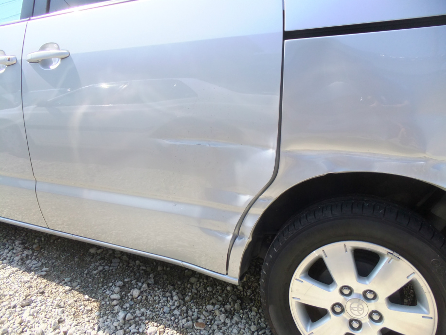 | ヴォクシー 左側面巻き込み事故 切れ 凹み大 鈑金塗装 |