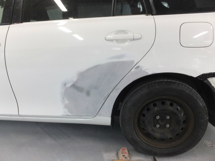 | カローラフィールダー 左側面巻き込み事故 鈑金塗装 |