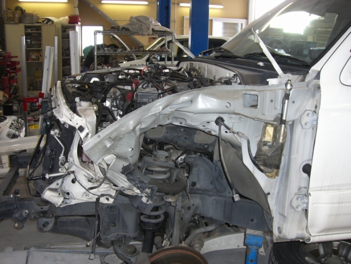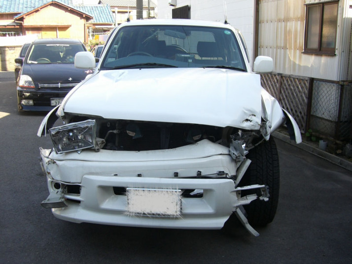 | ハイラックスサーフ 前方事故 フレーム損傷大 鈑金塗装 |