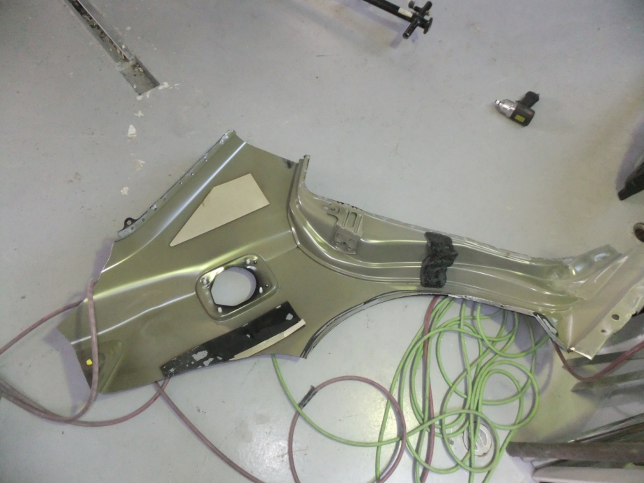 鈑金開始です。1番厄介なクォーたから鈑金します。溶接してから、叩きだします。