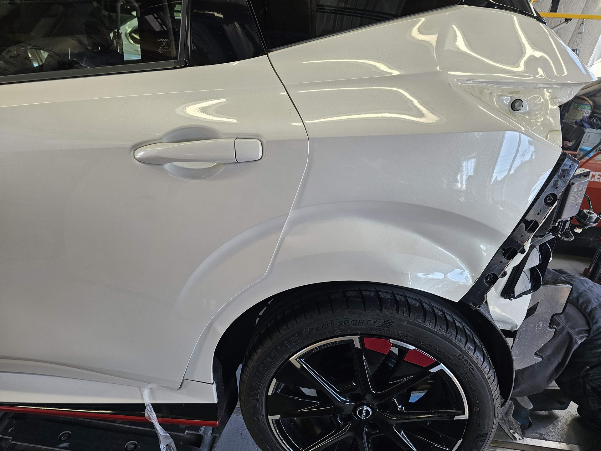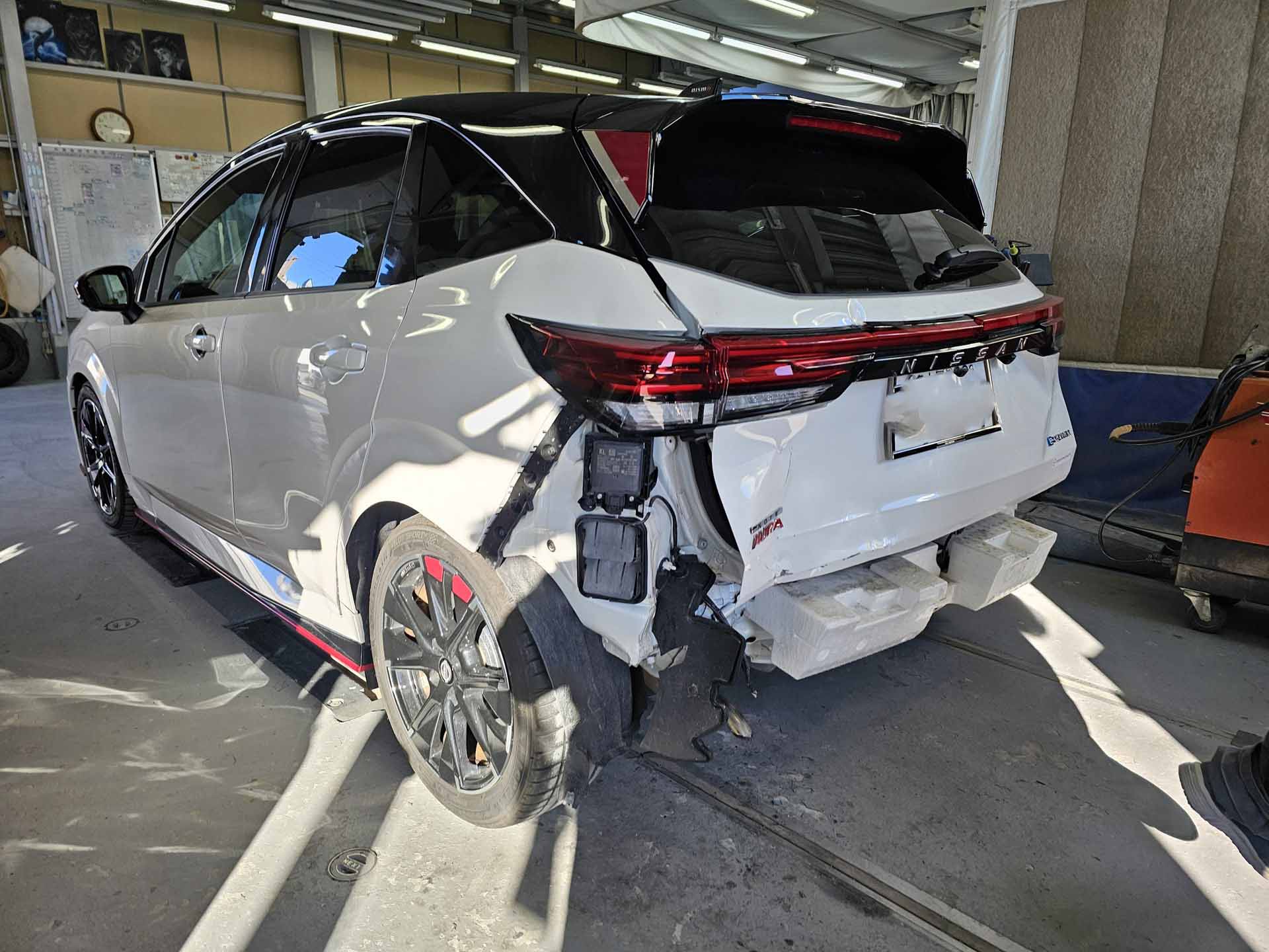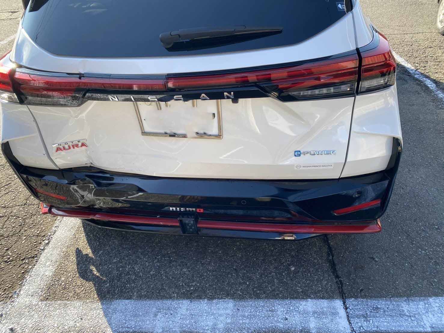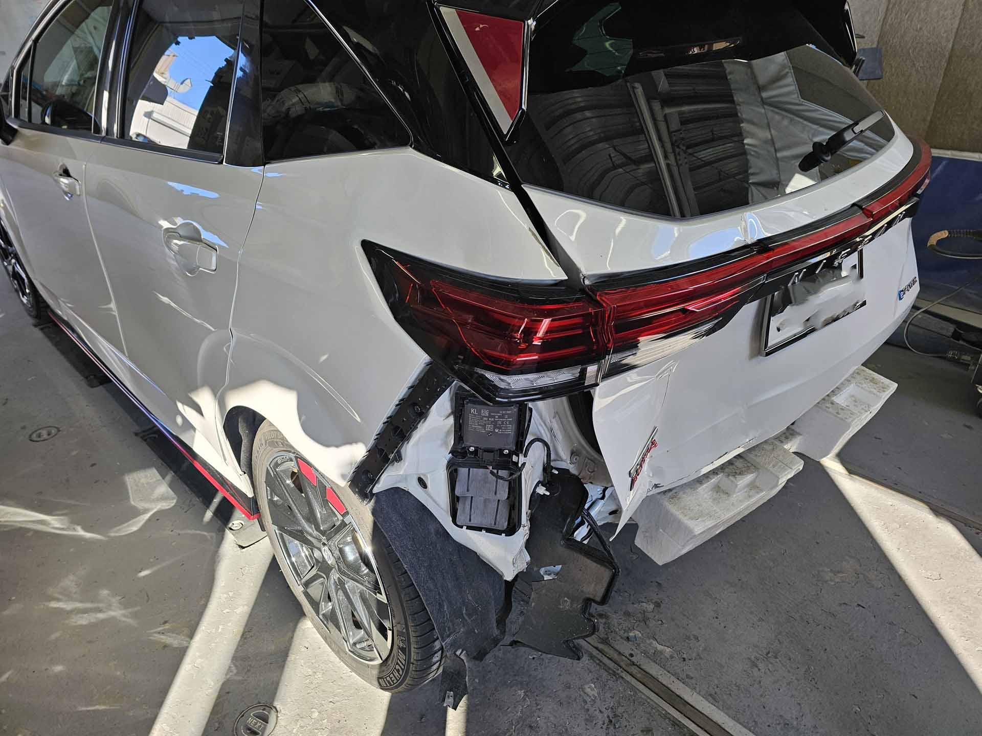 かなりの巻き込み具合です。 よく見ると、左フェンダーから、リアまで、ぶつかっています。
