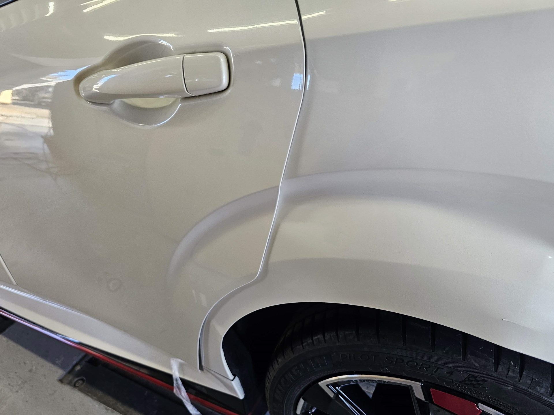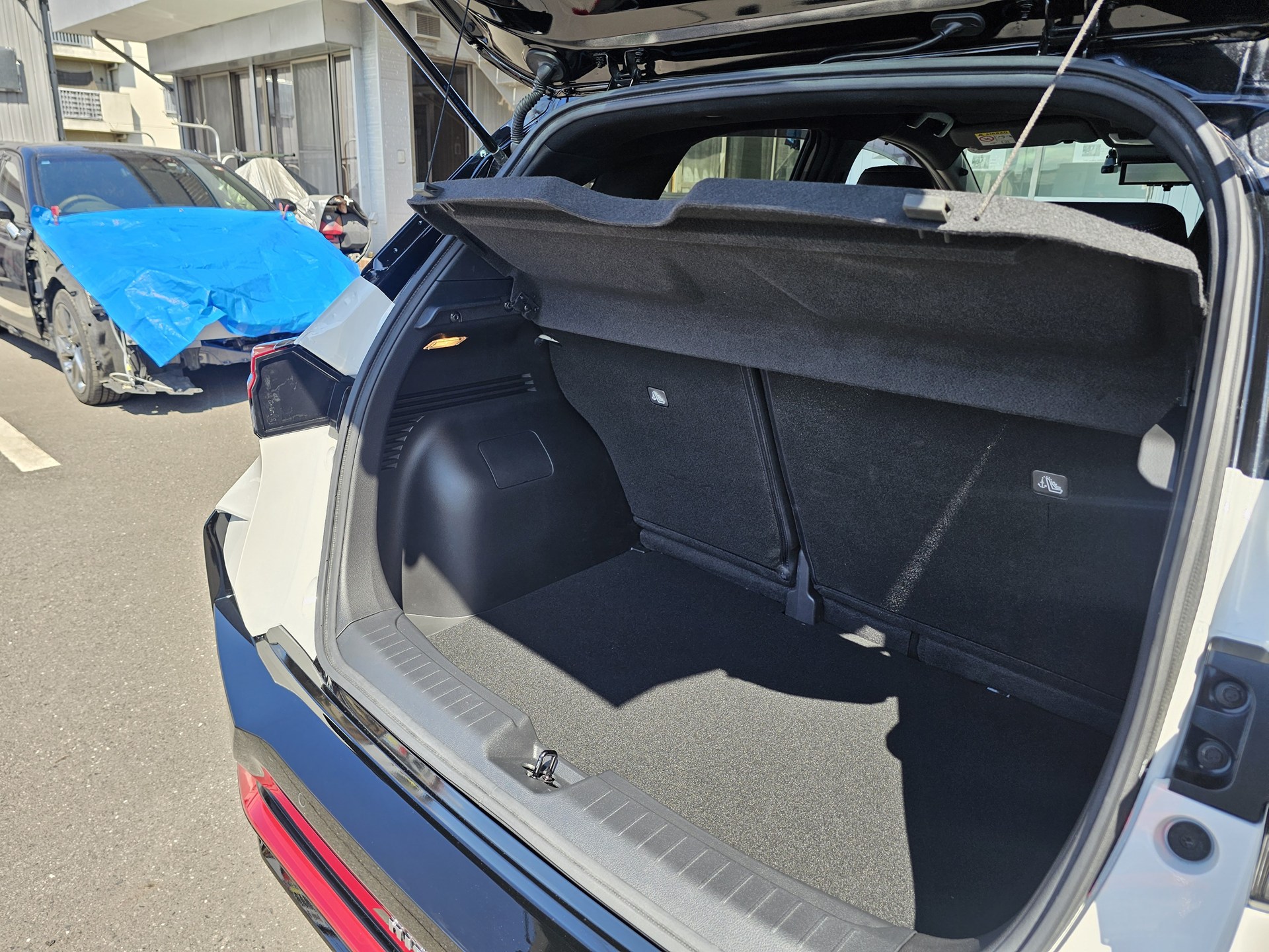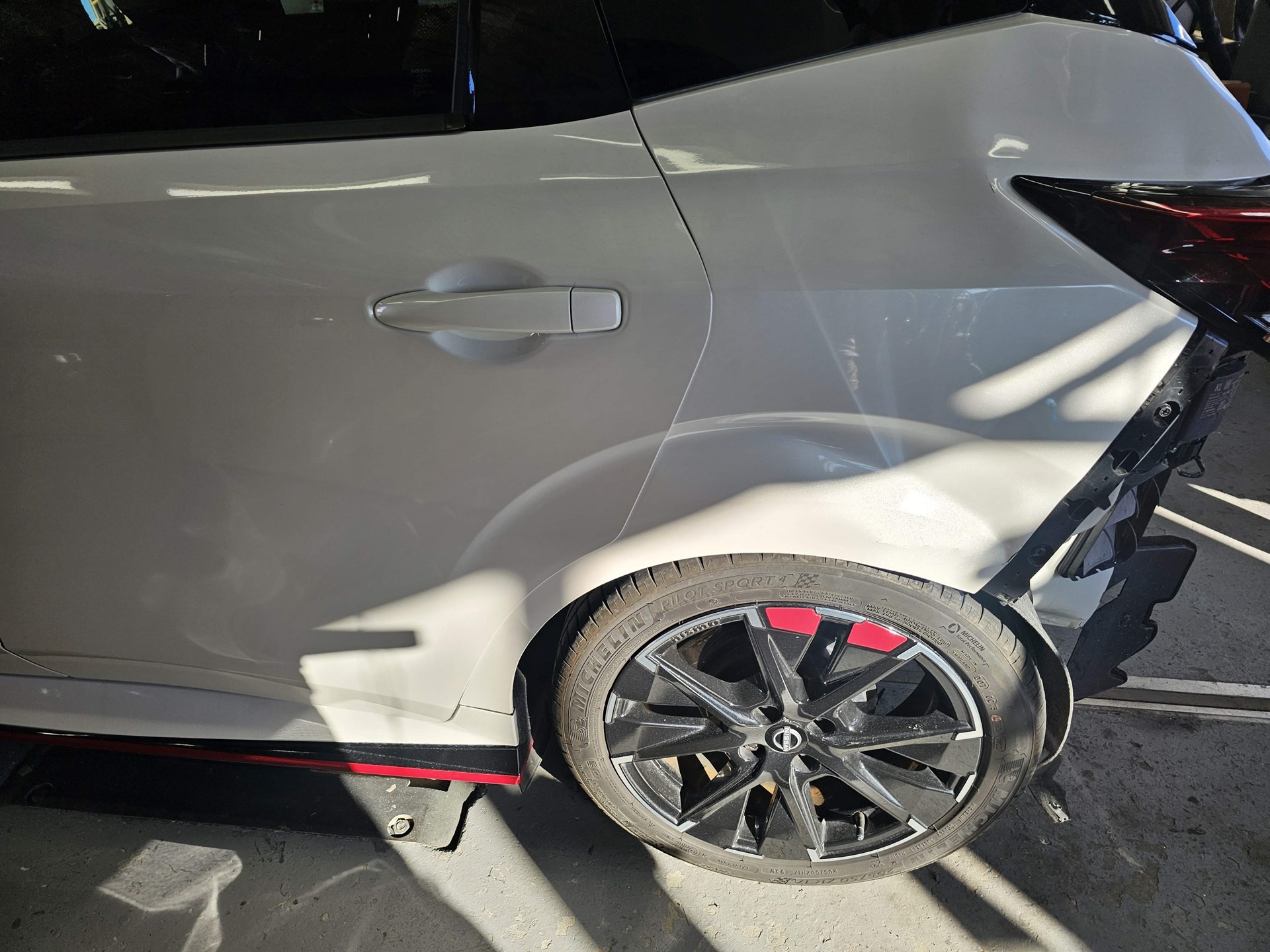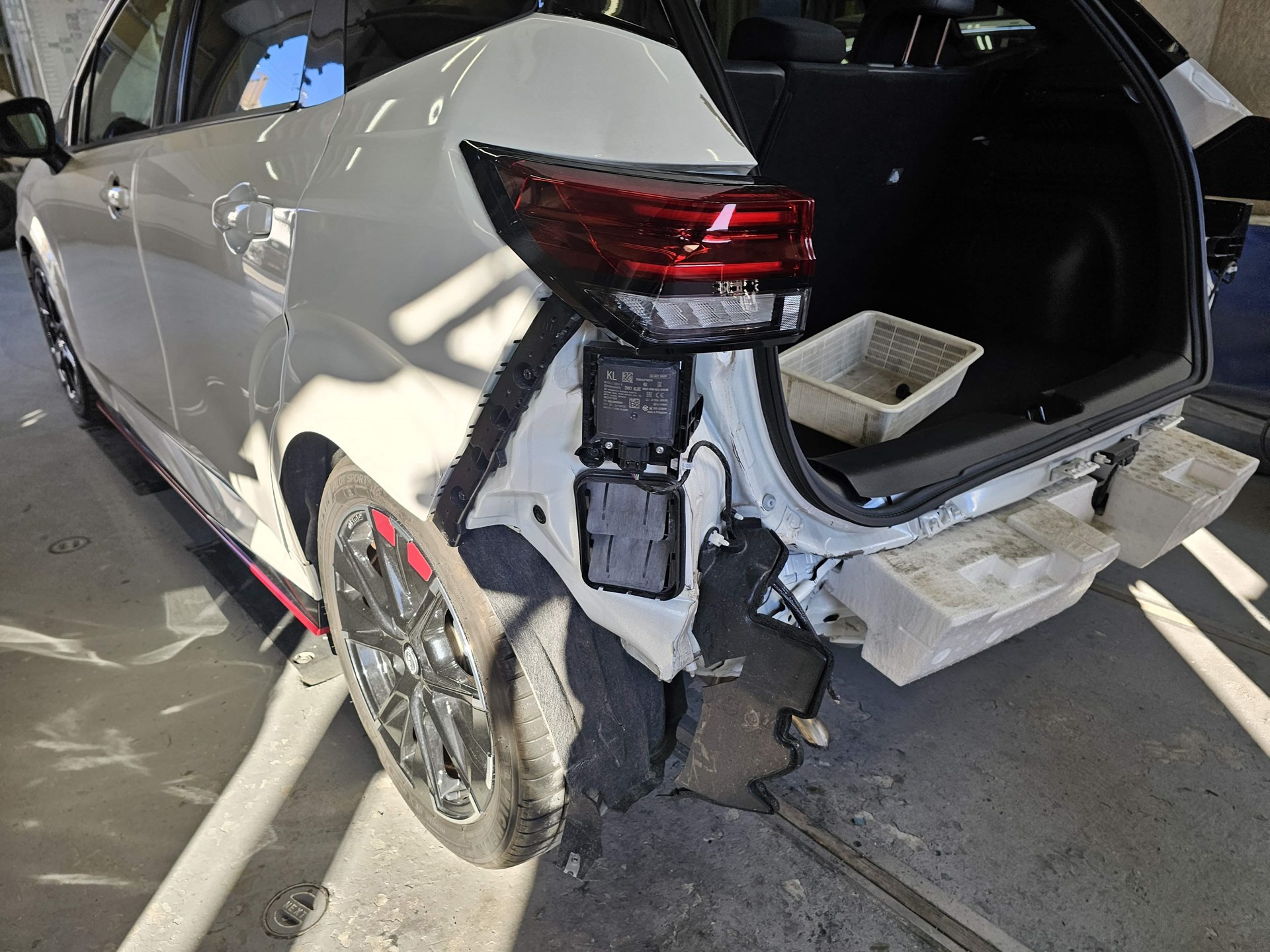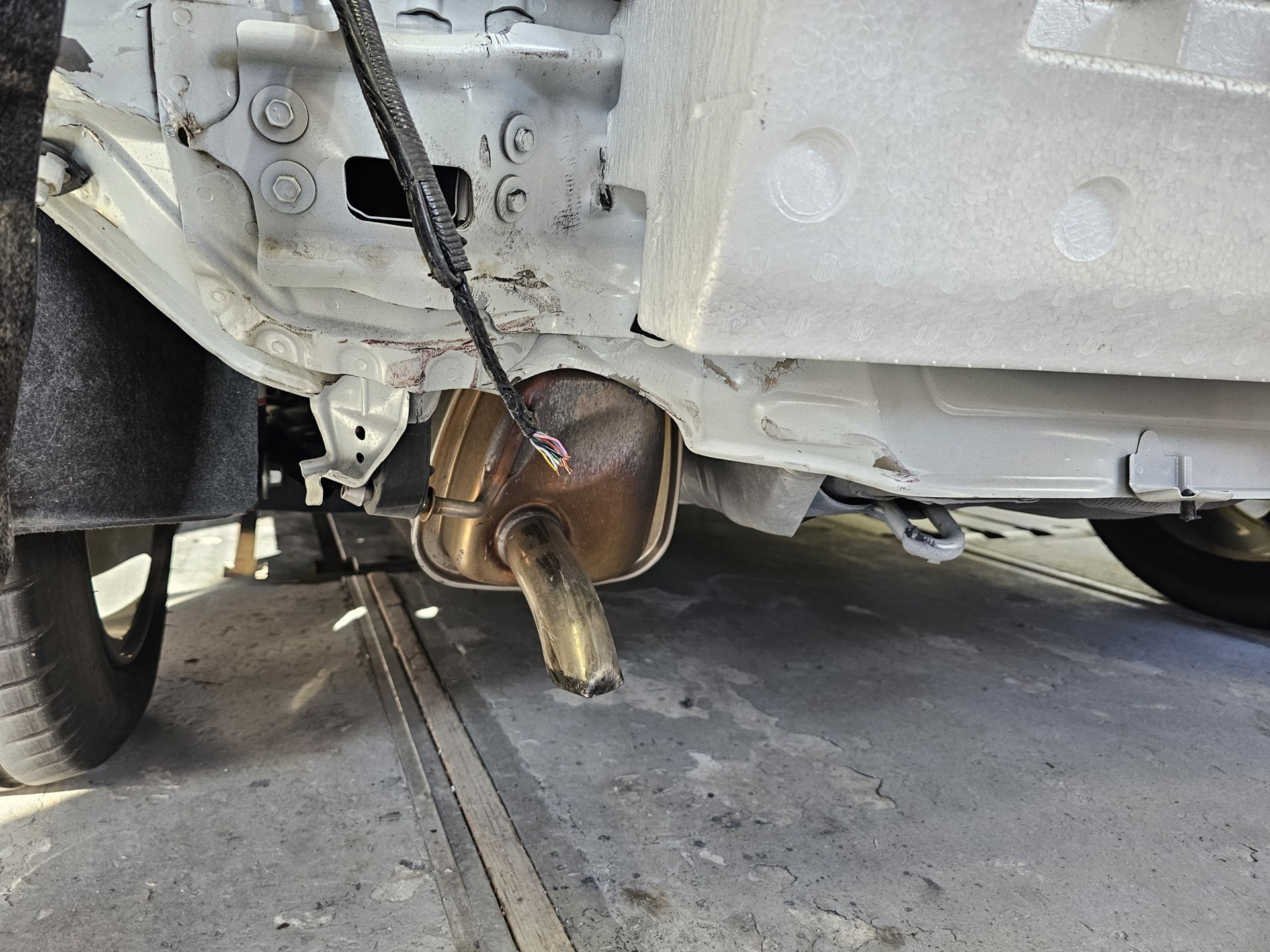 かなりの巻き込み具合です。 よく見ると、左フェンダーから、リアまで、ぶつかっています。