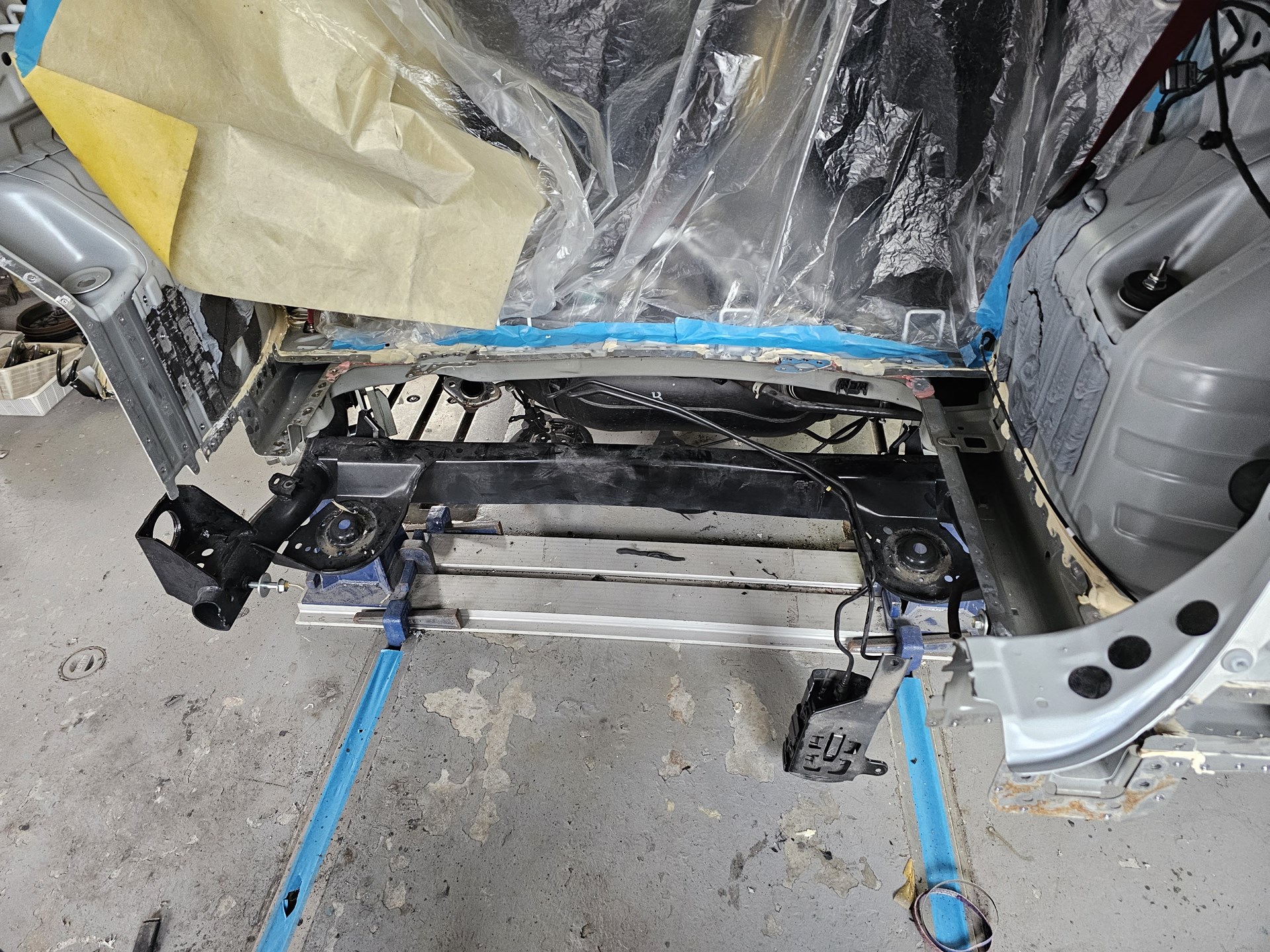 エンジンを降ろして、フレームの荒出し作業中です。