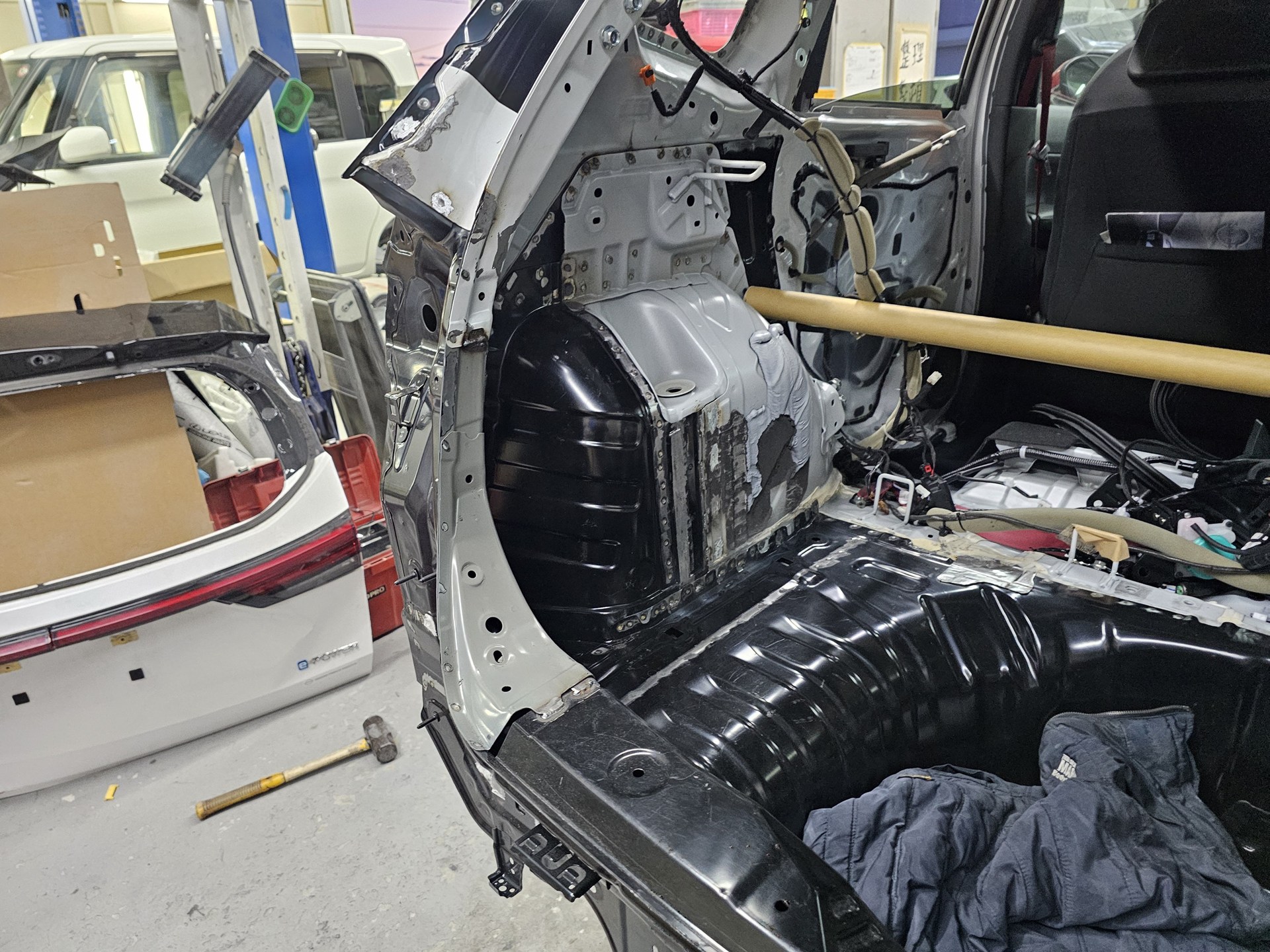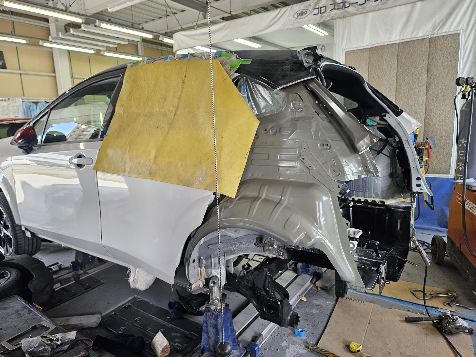 鈑金、修理開始です。