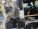 スライドドアがひどすぎて、あまり目に留まりませんが、左フロントドアも、大きく損傷し、裏側までも・・・・